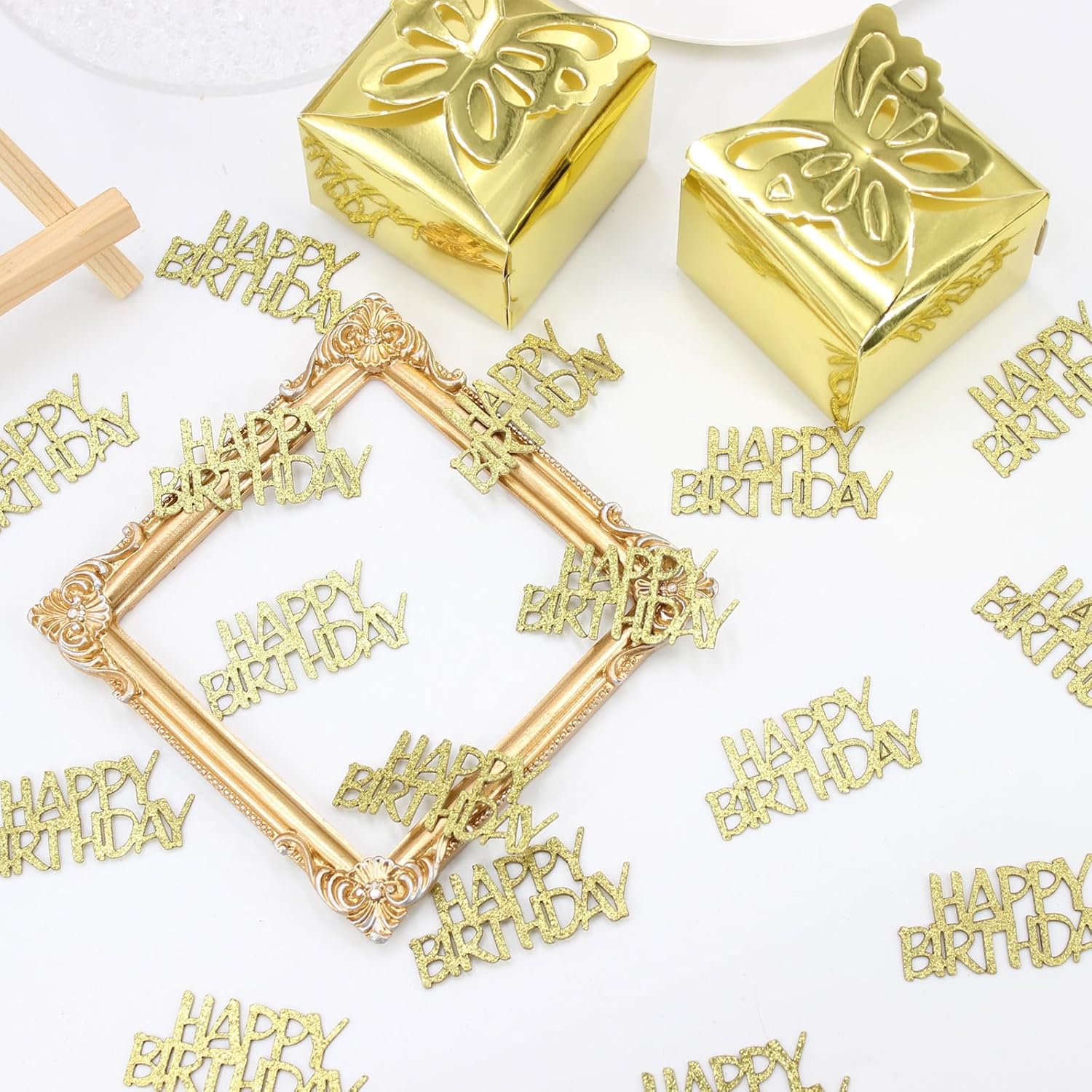Gold Happy Birthday Confetti for Tables Glitter Birthday Party Table Scatters for Adult/Kids Birthday Anniversary DIY Crafts Party Supplies 100PC