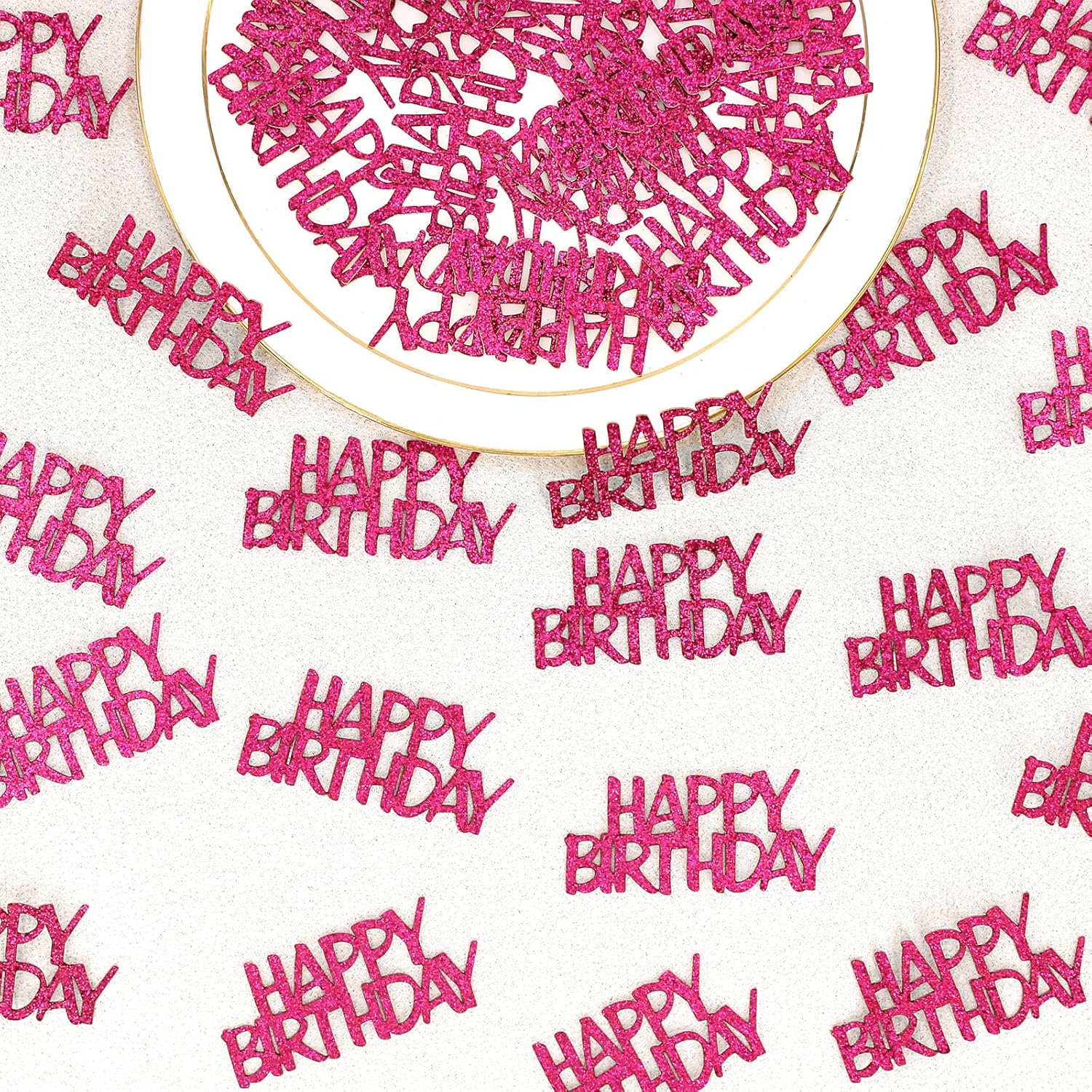 Hot Pink Happy Birthday Confetti Girl Birthday Party Decorations Glitter Table Scatters for Adult Women Birthday Anniversary DIY Crafts Party Supplies 100PC