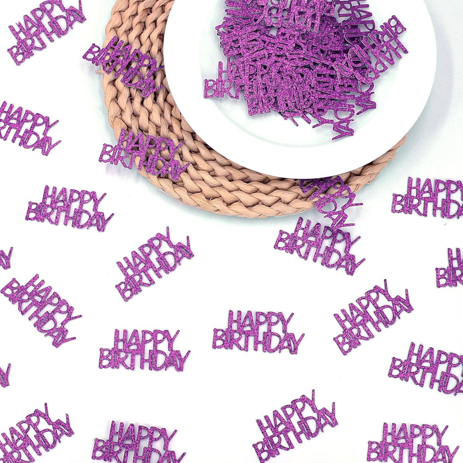 Purple Happy Birthday Confetti Girl Birthday Party Decorations Glitter Table Scatters for Adult Women Birthday Anniversary DIY Crafts Party Supply 100PC