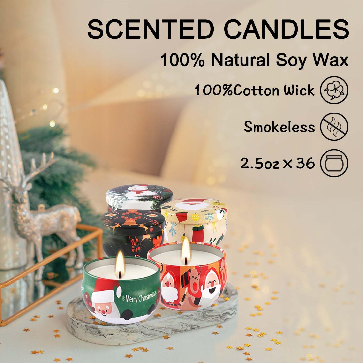 36Pack Christmasc Sets,Long Burning,2.5oz Natural Soy Wax with Essential Oils Decorative Aromatherapy Candles for Christmas,Thanksgiving Gift, Home Scented