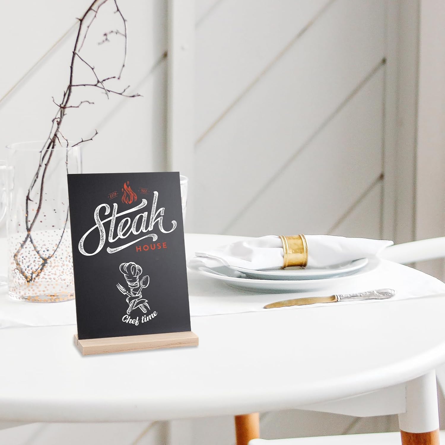 • [PERFECT FOR VARIOUS OCCASIONS]: These tabletop chalkboard with wood stand are perfect for a wide range of uses, including food signs, displaying messages, table numbers, WiFi signs, or as message boards for events like Easter festivals, parties, buffets, and wedding decorations. They add a charming and decorative touch to any occasion.