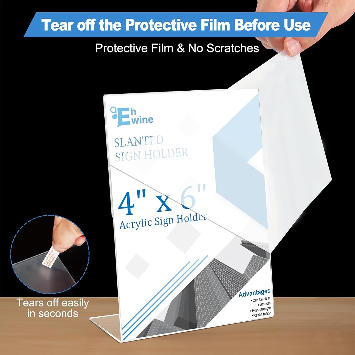 • Easy to Use: Each of our Acrylic Sign Holder comes with a peel off film guide, follow the red arrows to peel off the film in seconds, and the plastic sign holder has an opening on its side for easy paper insertion