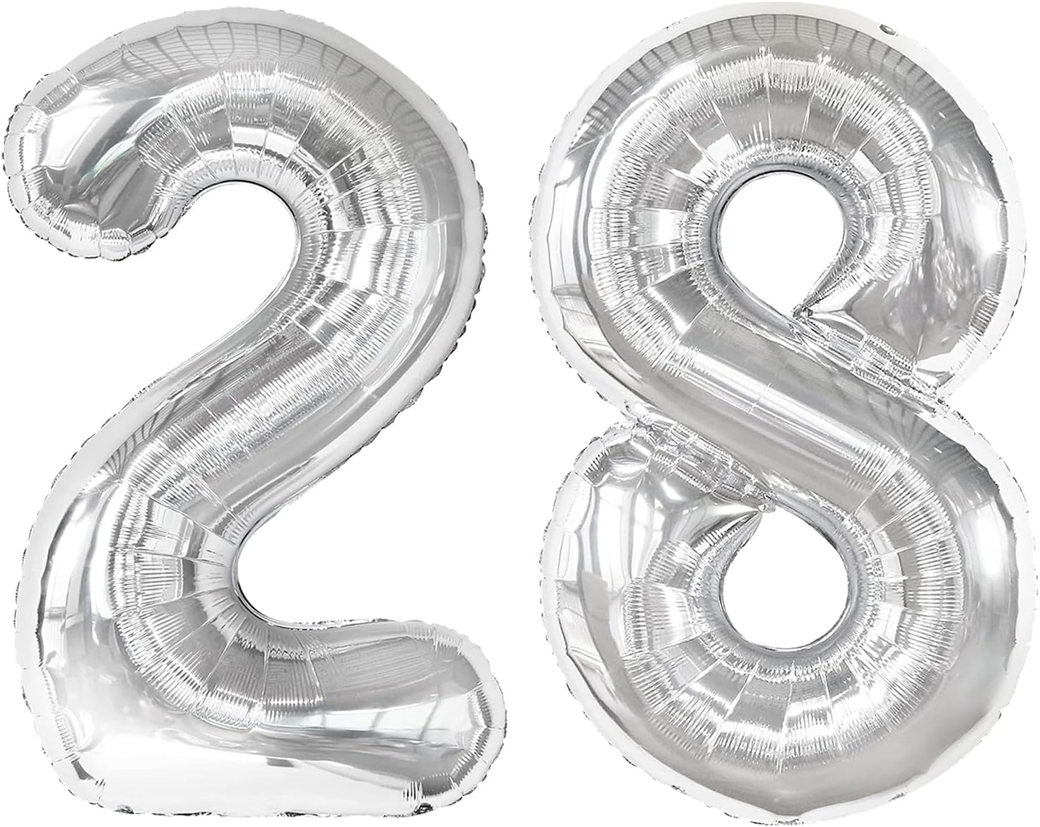 • 1.Elegant Understated Silver Number Balloons: You will receive an uninflated 40 inch number 28 balloon. Big number balloons are always the best statement of romance and surprise. Silver balloons symbolize vitality exoticism, adding glamour to birthday parties. Bright metallic silver and huge size make silver balloons a highlight of special parties. Choose one or more numbers from 0-9 birthday numbers, and use 28 82 balloon numbers to create a lively and charming party!