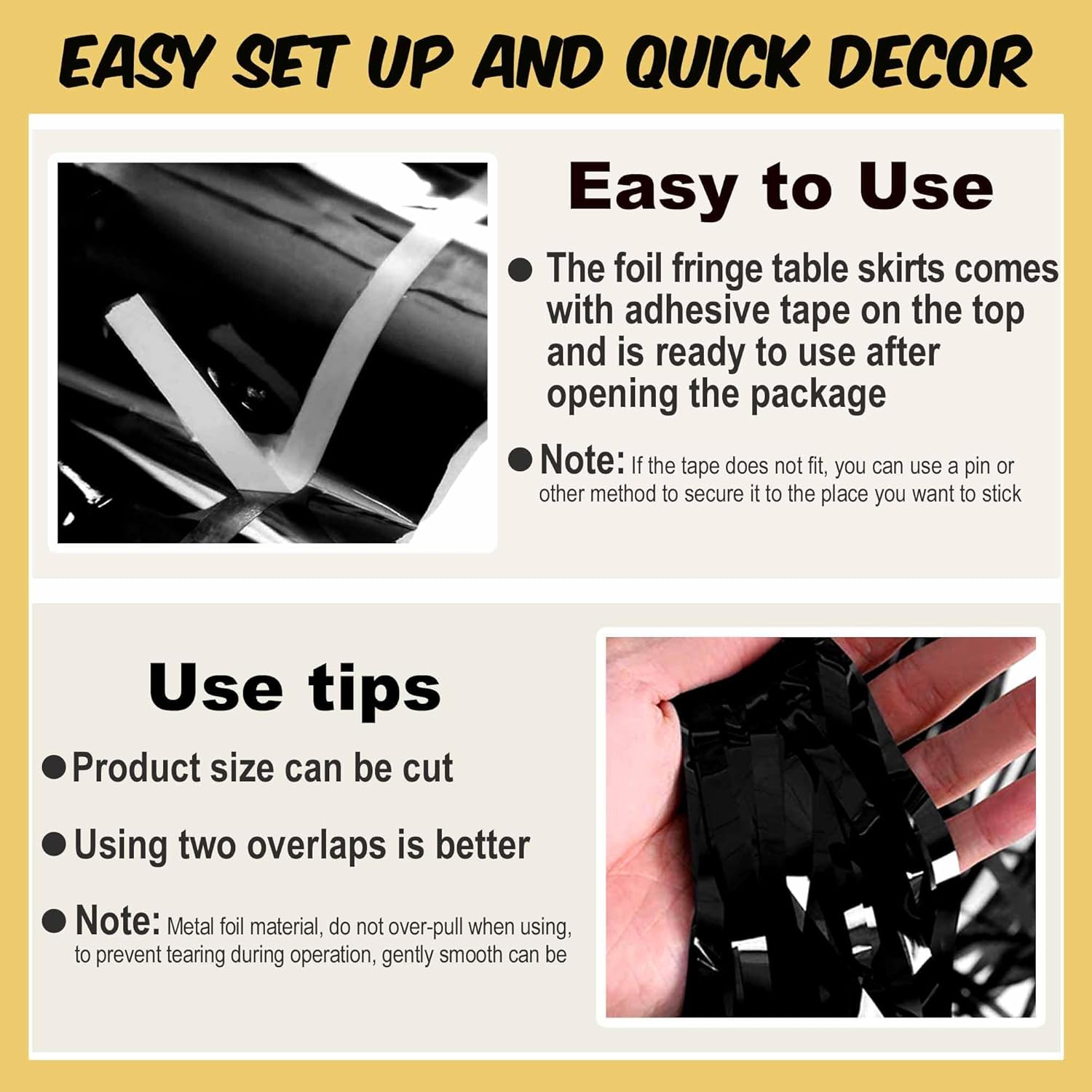 • Easy to Use: Each metallic fringe table skirts comes with self-adhesive tape on the top for easy attachment to your wall or table, just peel off the tape and then stick, easy and fast to install.