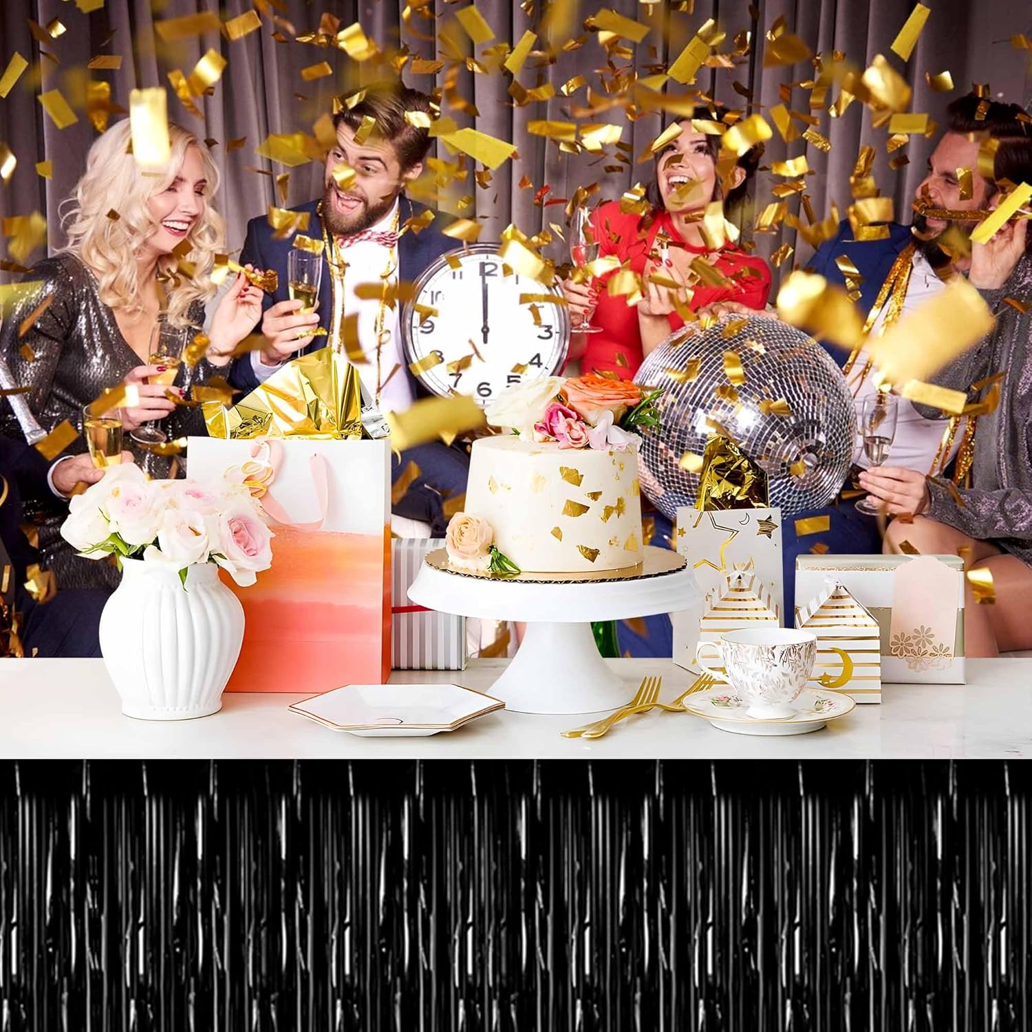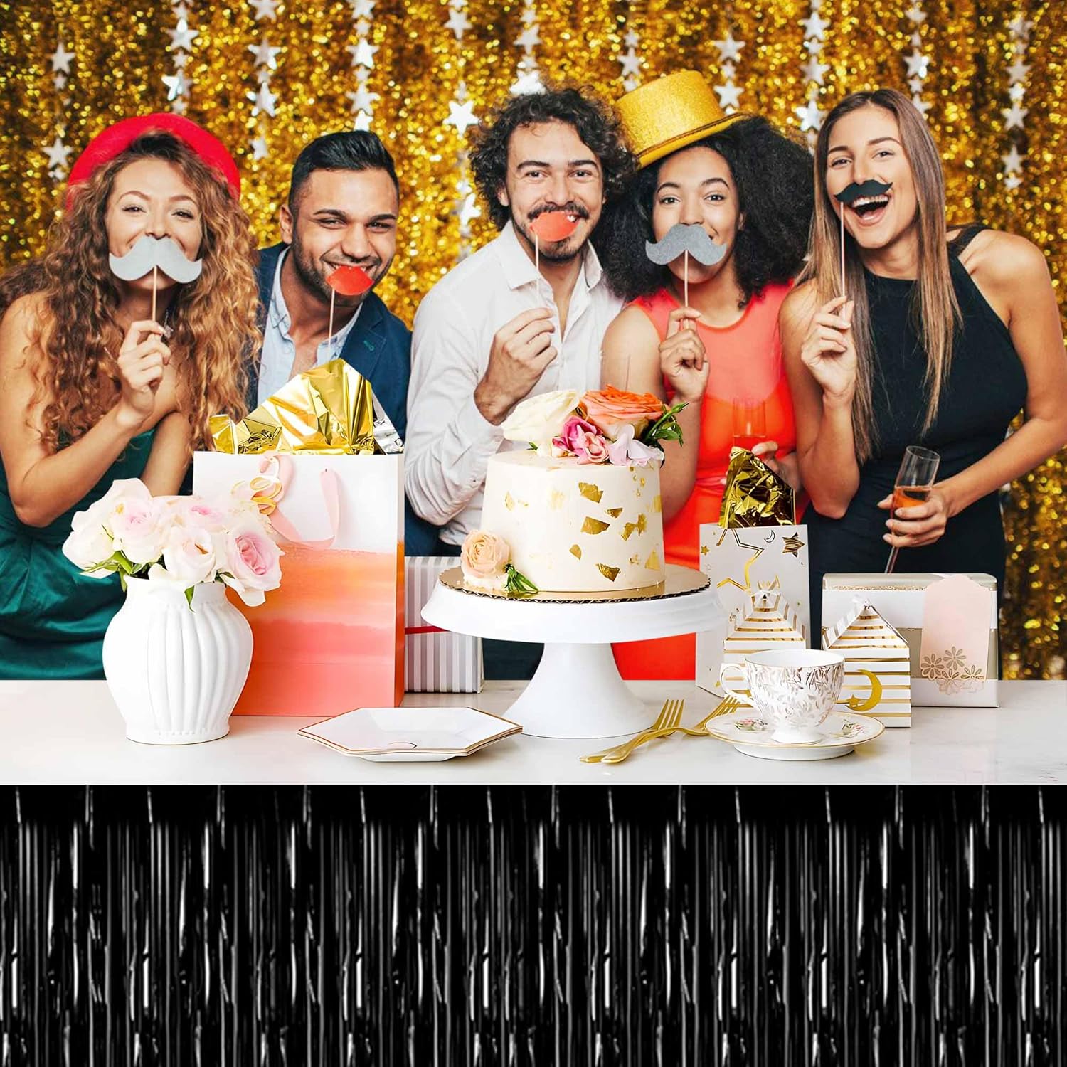 3 Pack 29 x108 Inch Black Foil Fringe Table Skirts Metallic Banner for Tinsel Streamer Garland Backdrop for Parade Floats Mother's Day, Graduate, Birthday, Wedding Party Decoration