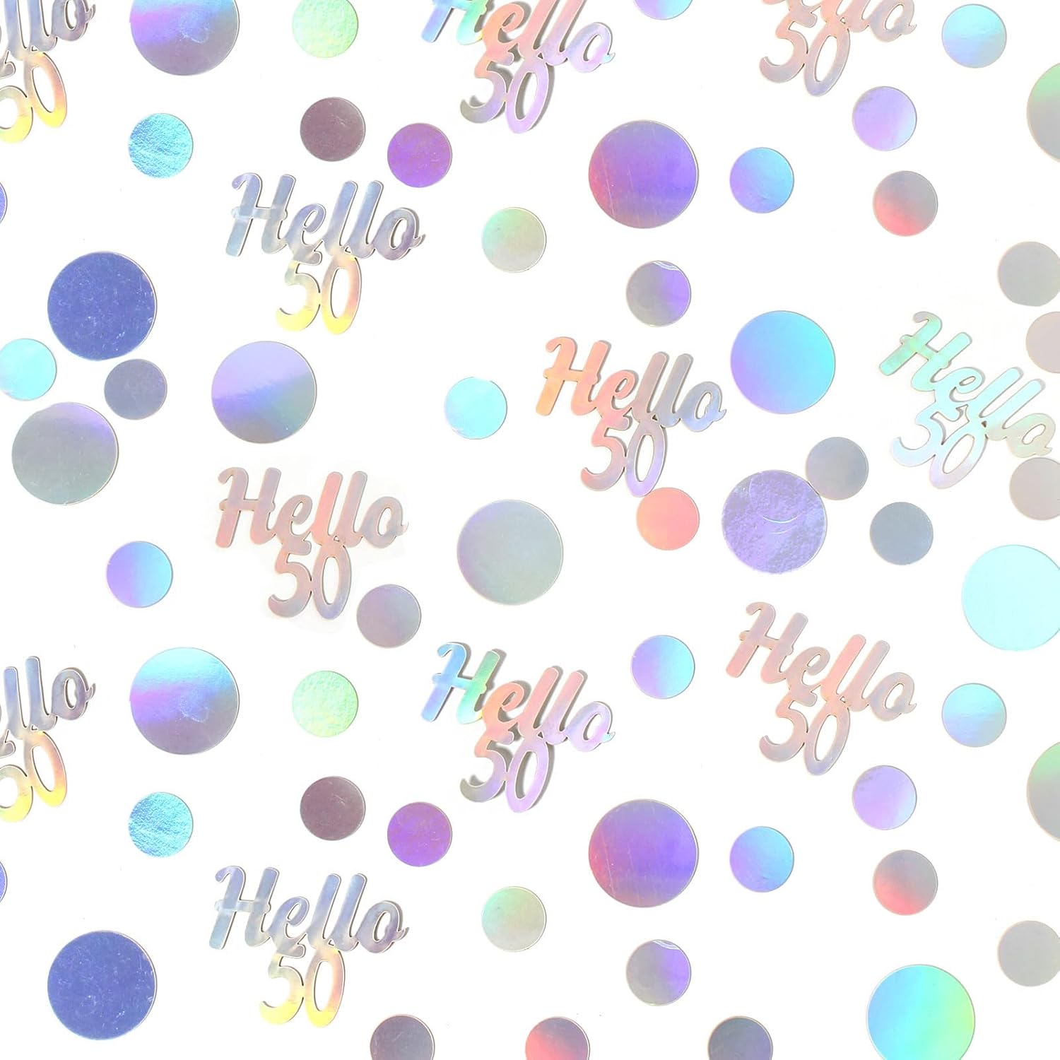 Hello 50 Birthday Confetti for Table Iridescent Circle Happy 50th Birthday Party Decorations for Women Fifty Years Old Birthday Tables Scatter Party Confetti Wedding Anniversary Decor 300PC