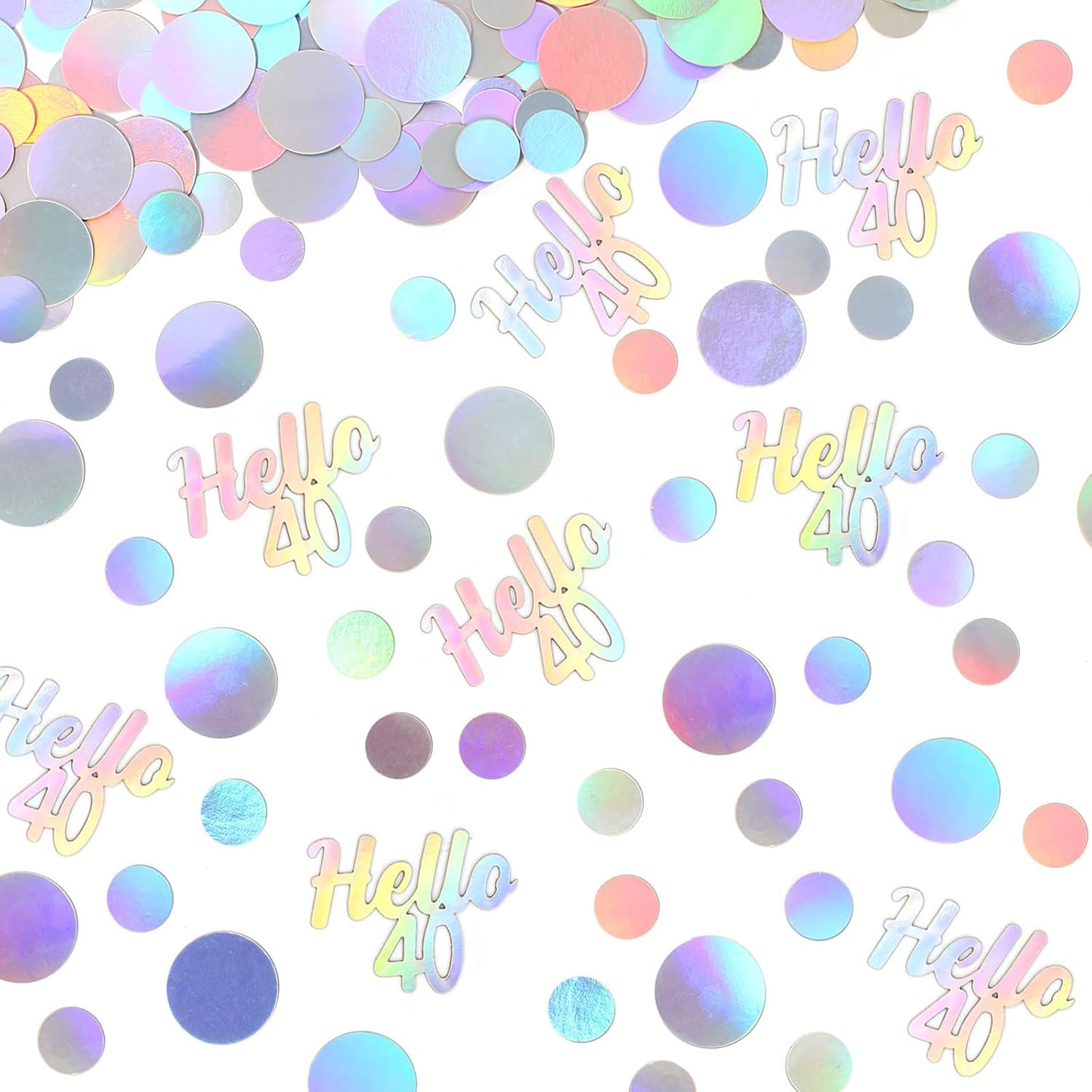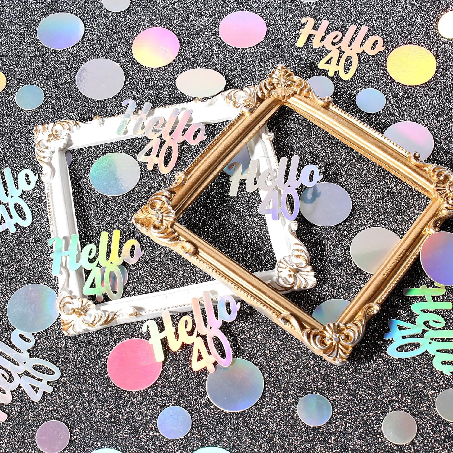 40th Birthday Confetti for Table Iridescent Birthday Party Decorations for Her Circle Dots Hello 40 Women Forty Years Old Birthday Table Scatters Decor Anniversary Party Supplies 300PC