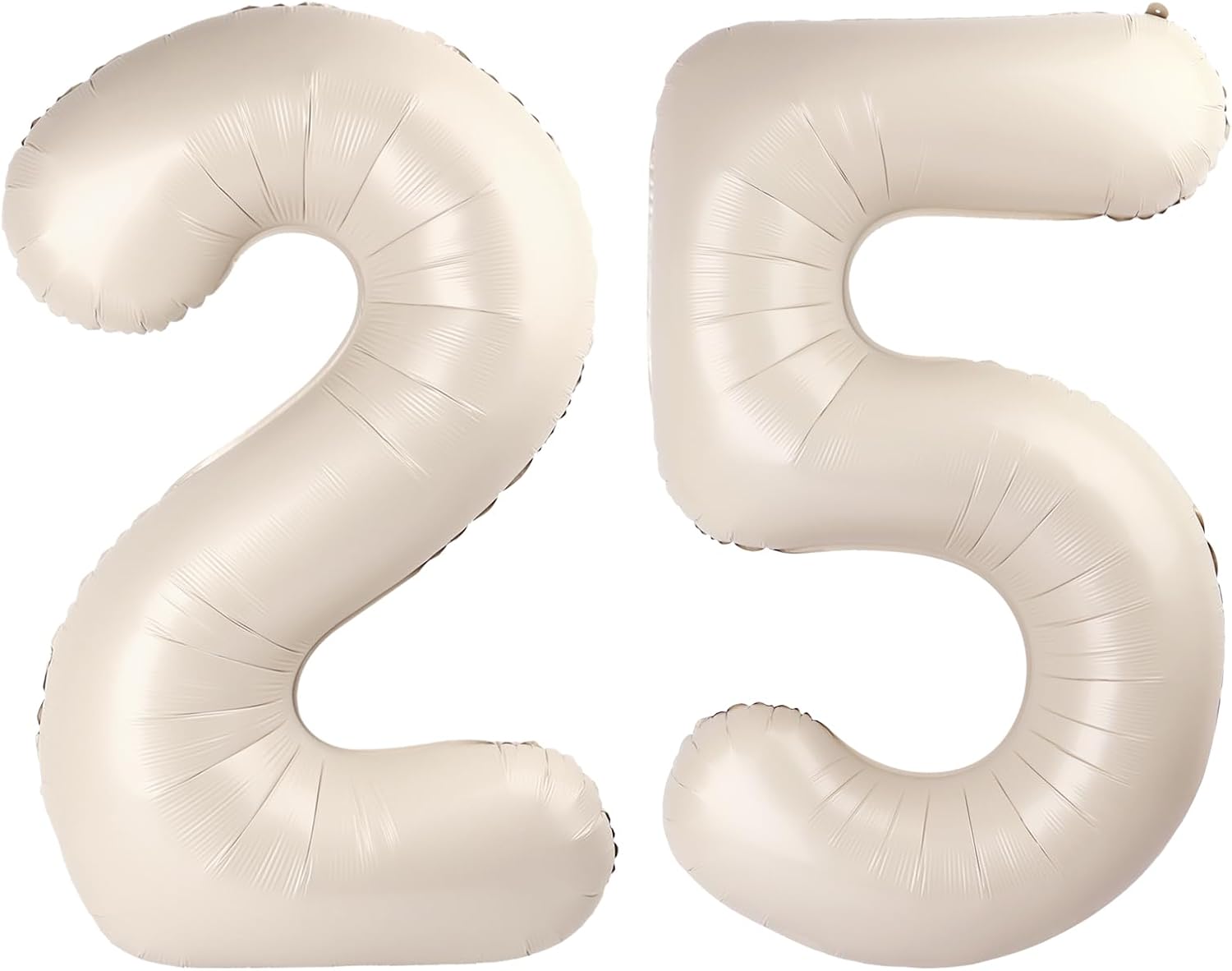 • 1.Elegant Understated Cream White Number Balloons:You will receive an uninflated cream white 40 inch number 25 balloon.Balloons are always the best statement of romance and surprise.Cream white balloons symbolize vitality and exoticism,adding glamour to birthday parties.Bright metallic cream white and huge size make cream white balloon a highlight of special parties.Choose one or more numbers from 0-9 number balloon,and use 25 52 balloons number to create a lively and charming party!