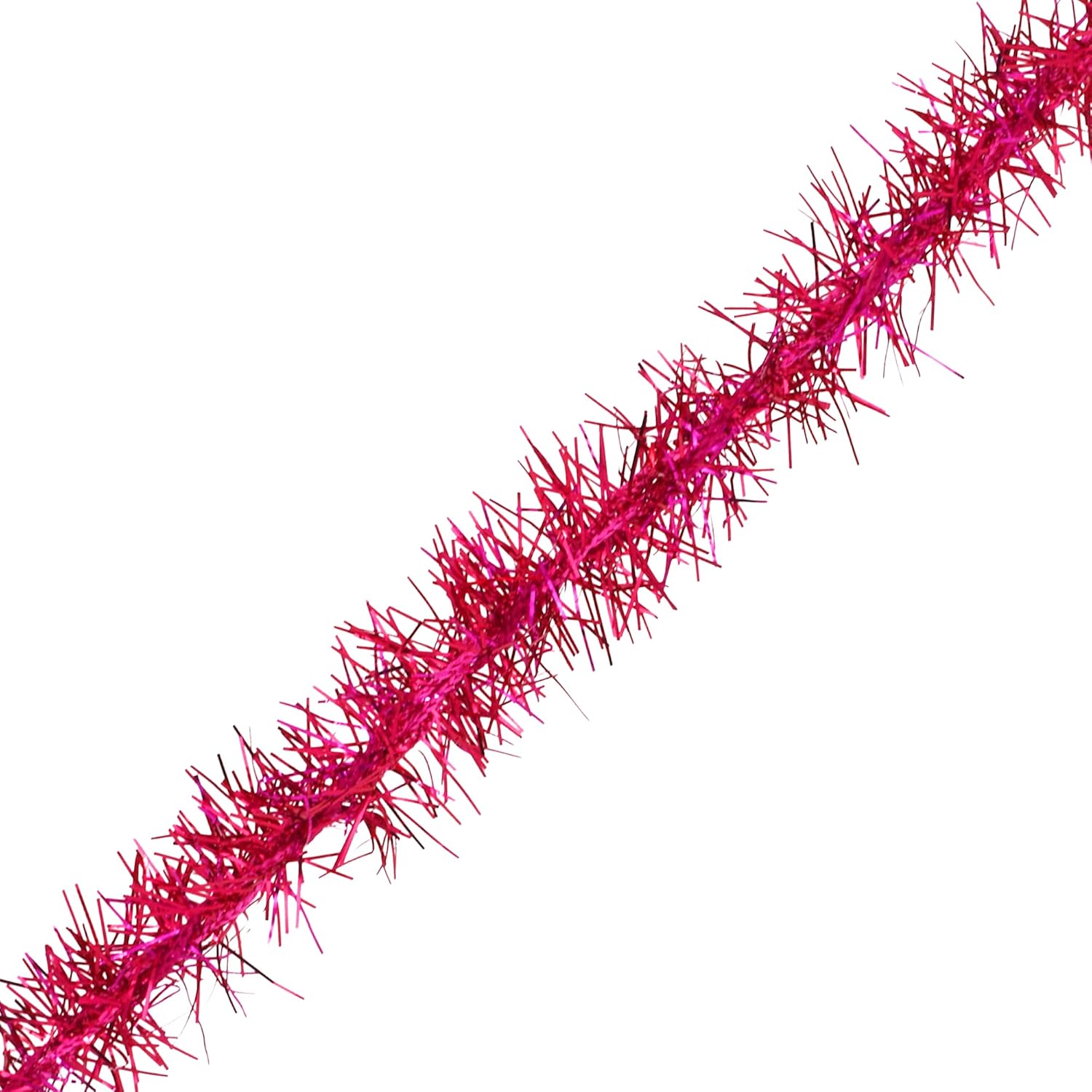 Mandala Crafts Hot Pink Tinsel Garland - Thin Metallic Foil Glitter Mini Garland for Christmas Tree, Party, Wedding Decor, and Holiday Decorations