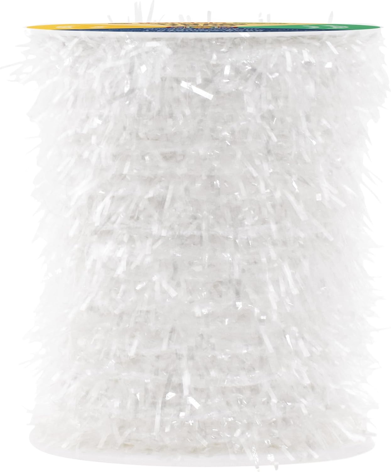 • Festive White Tinsel Trim Ribbon: The miniature tinsel garland is ideal for creating a photo prop backdrop, decorating wedding centerpieces, wreaths, and bushes, hanging ornaments, adding bling to floral arrangements, & wrapping presents.