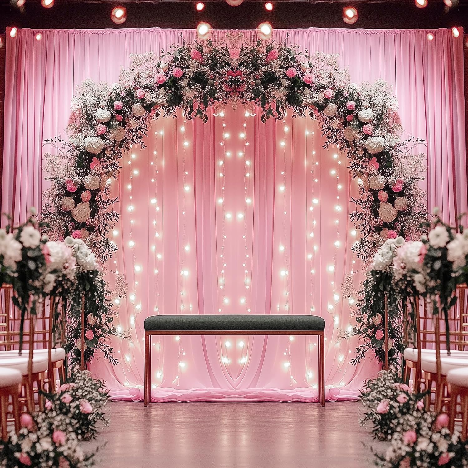 • Wrinkle Free Baby Pink Backdrop Curtain: This Baby Pink silky soft wedding backdrop for reception is made of wrinkle free material, known for its soft and silky texture, which will give you an extraordinary feeling of touch. The backdrop is exquisitely sewn, smooth and durable fpolyester with natural drape, add more elegance and romance to your weddings.