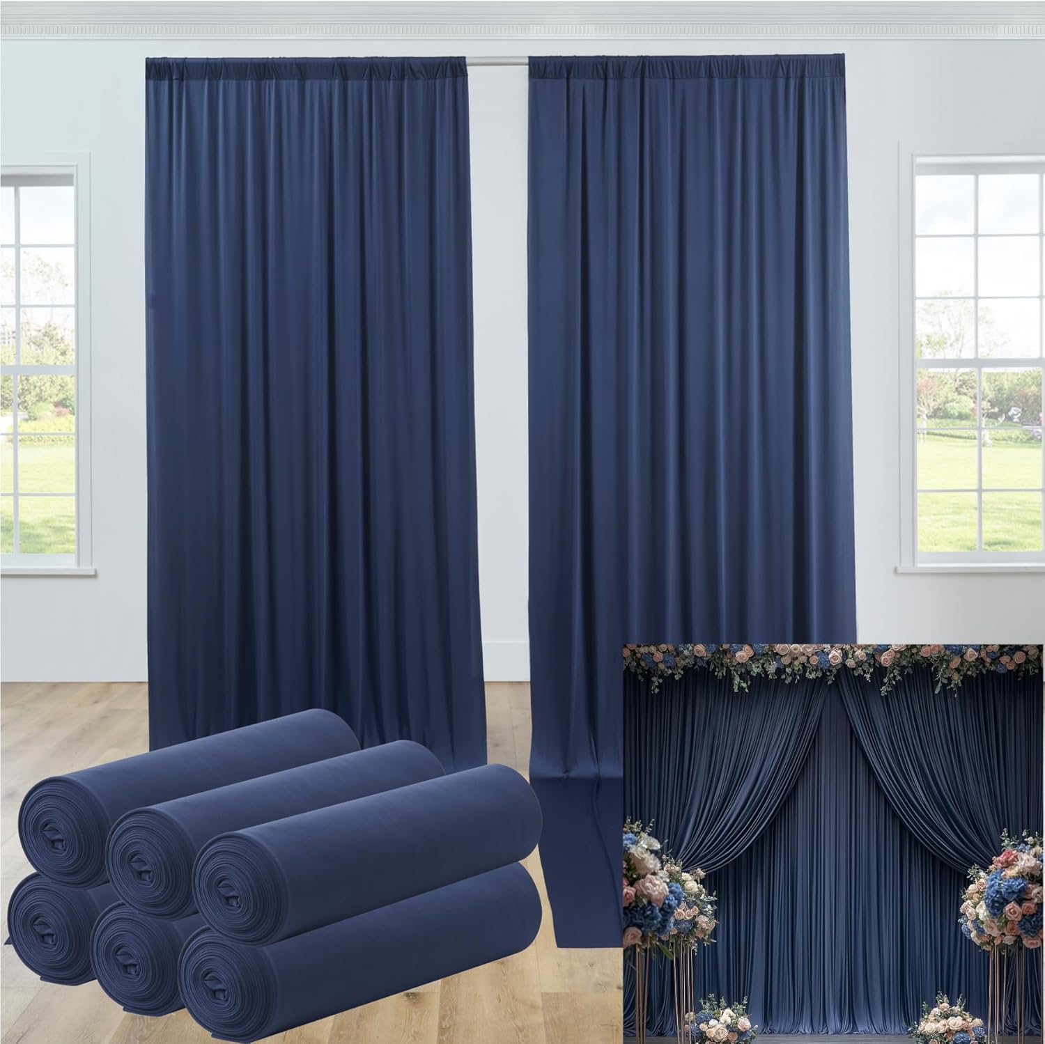 • Wrinkle Free Navy Blue Backdrop Curtain: This Navy Blue silky soft wedding backdrop for reception is made of wrinkle free material, known for its soft and silky texture, which will give you an extraordinary feeling of touch. The backdrop is exquisitely sewn, smooth and durable fpolyester with natural drape, add more elegance and romance to your weddings.