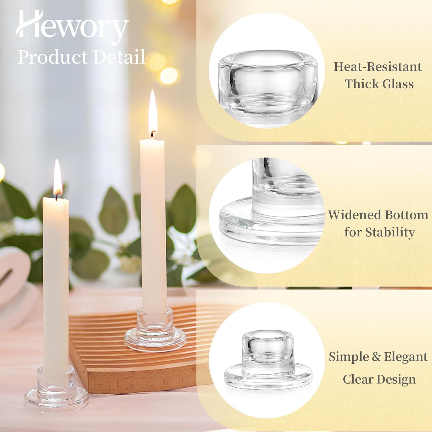 Hewory Glass Taper Candle Holders: 20 PCS Candlestick Holders Clear Short Tapered Candle Holder Set - Candle Stick Holder Decor for Table Centerpiece Wedding Party Advent Christmas Home Decorations