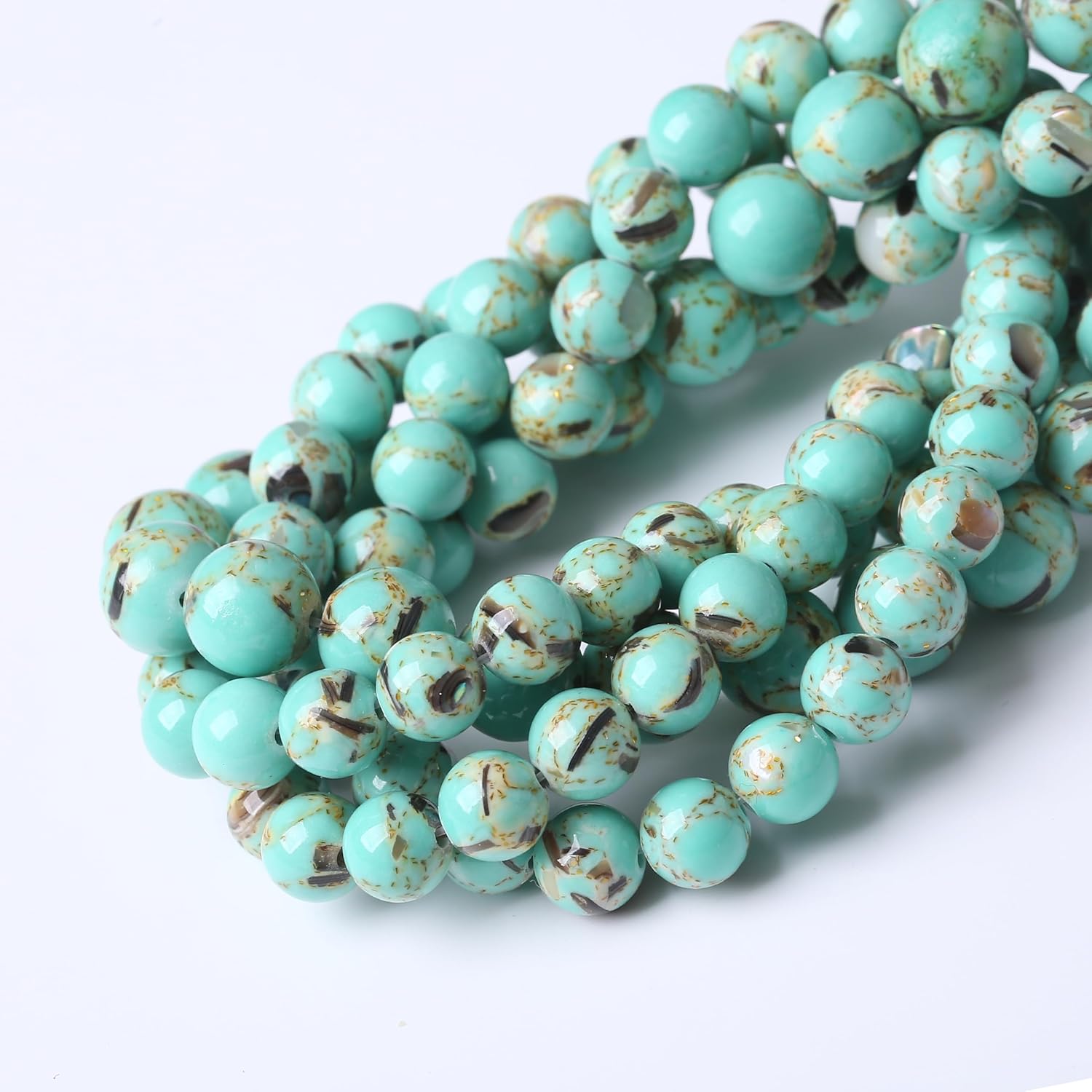 Gold Wire Turquoisee Stone Beads Gemstone Round Crystal Energy Jade Beads Stone Beads for Jewelry Making DIY Bracelet Necklace Jewelry Making 1 Strand 15.5inch 31PCS 12MM