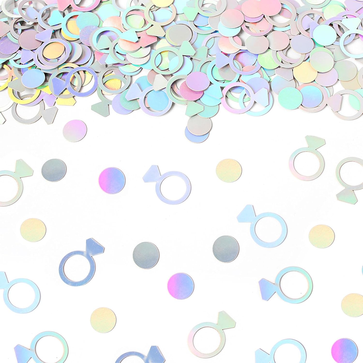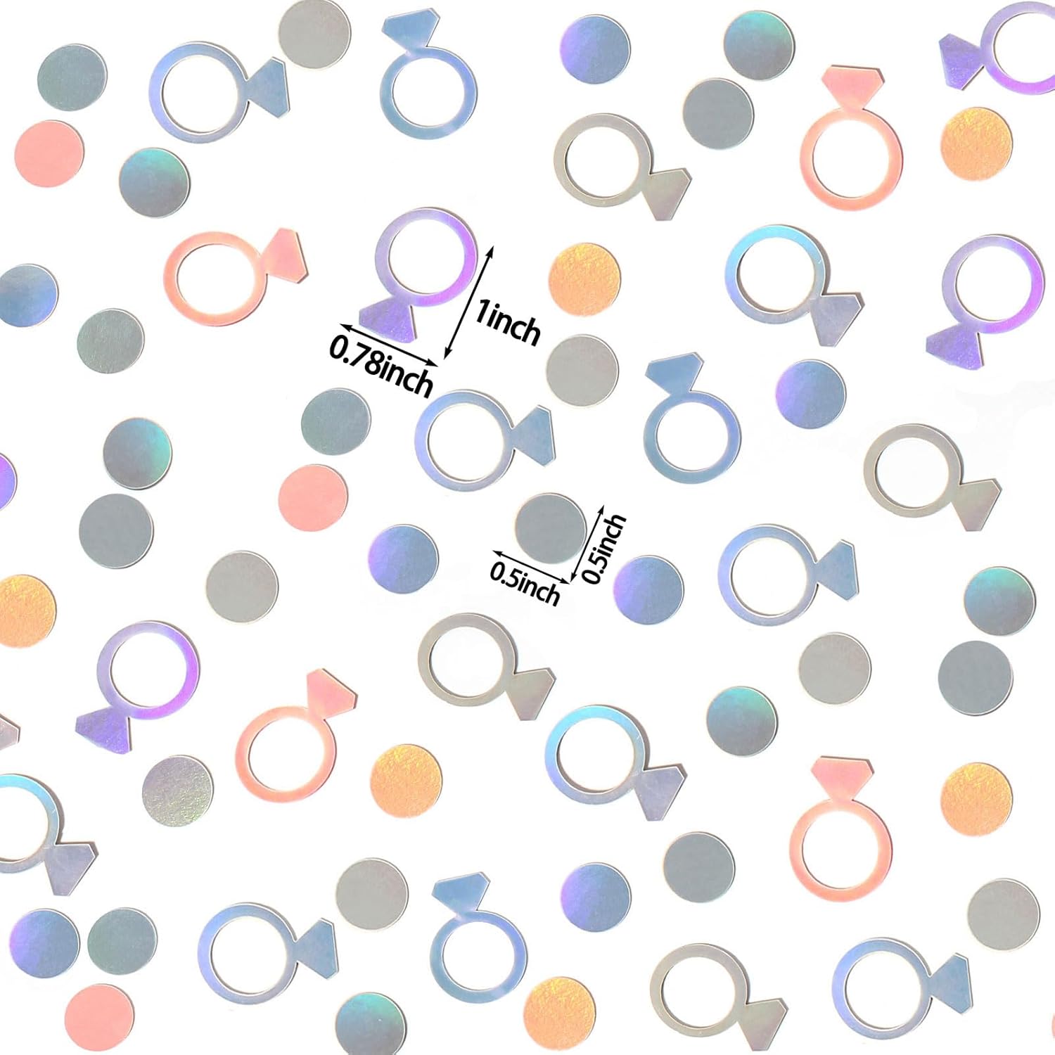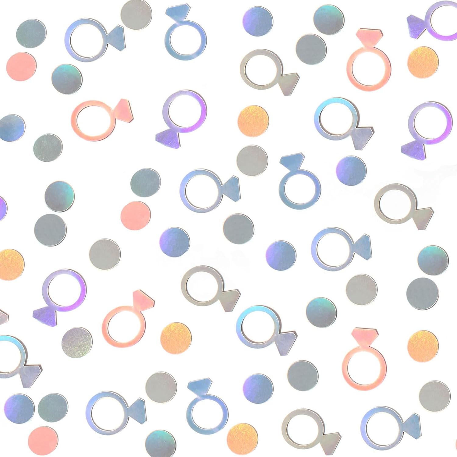 200PC Wedding Confetti for Tables Bachelorette Confetti Ring Confetti Scatters Suitable for Iridescent Themed Bridal Shower Engagement Hen Party Decorations