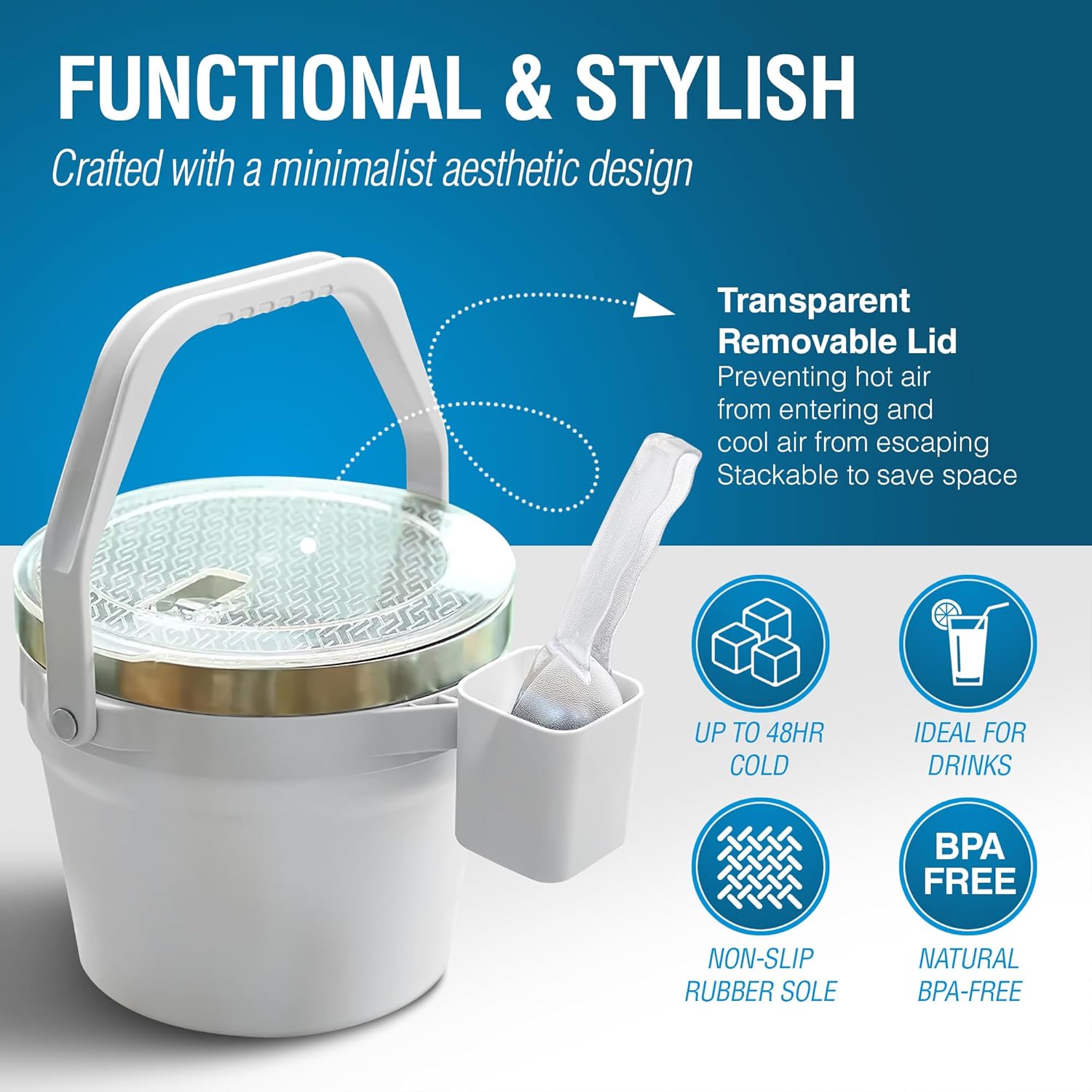 Insulated Ice Bucket with Lid & Scoop-XL Double-Walled, bar Essentials for Entertaining, Holiday Party, Stainless Steel Wine Chiller, Beverage Tub with Handle, Bottle Opener, Great Gift(White)