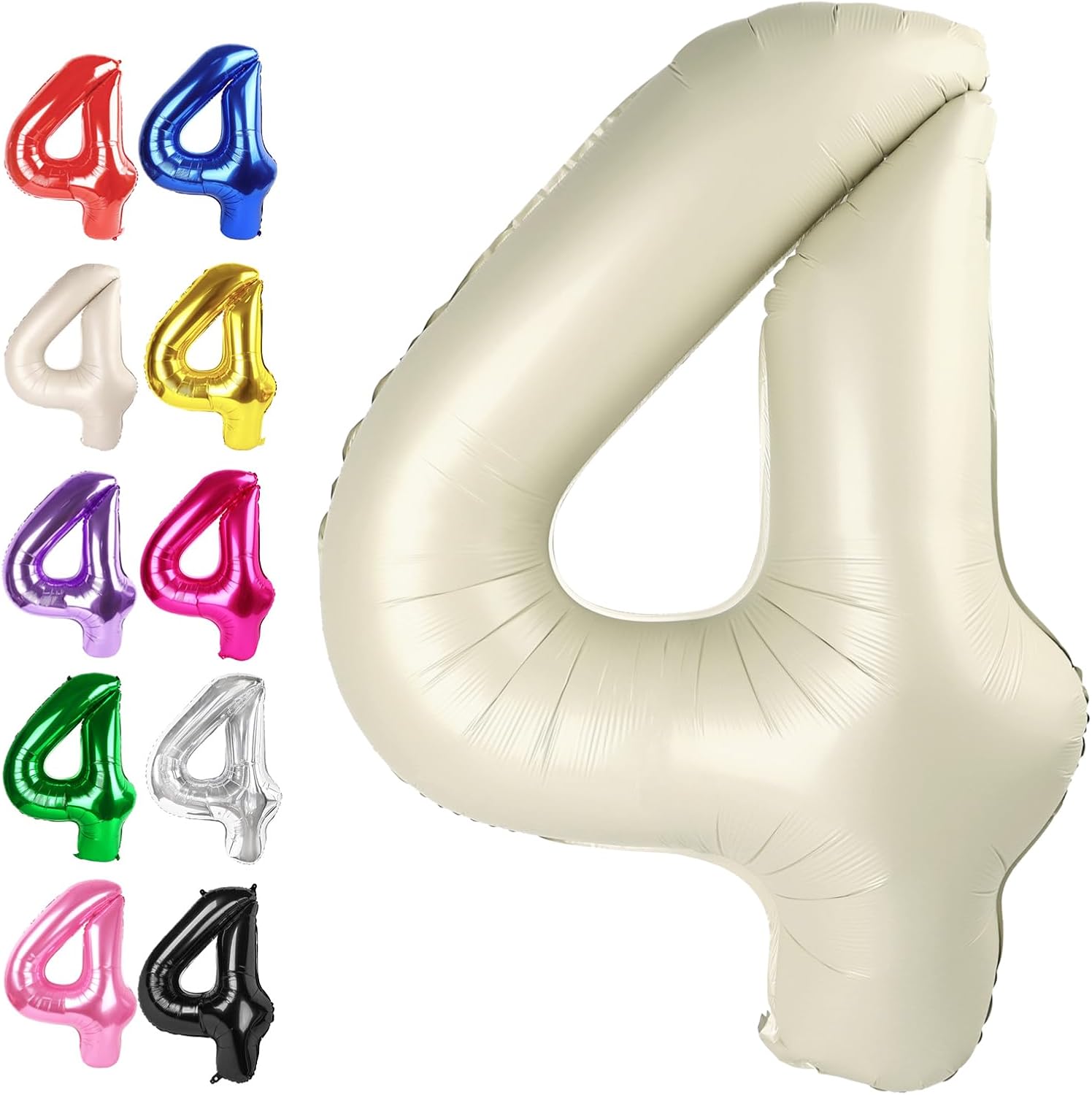 • 1.Elegant Understated Cream White Number Balloons: You will receive an uninflated 40 inch 4 balloon number. Big number balloons are always the best statement of romance and surprise. Number foil balloons symbolize vitality exoticism, adding glamour to birthday parties. Bright cream white and huge size make 4 white balloons a highlight of special parties. Choose one or more numbers from 0-9 number balloon, and use 4 14 24 34 44 54 64 84 94 birthday balloons to create a lively and charming party!