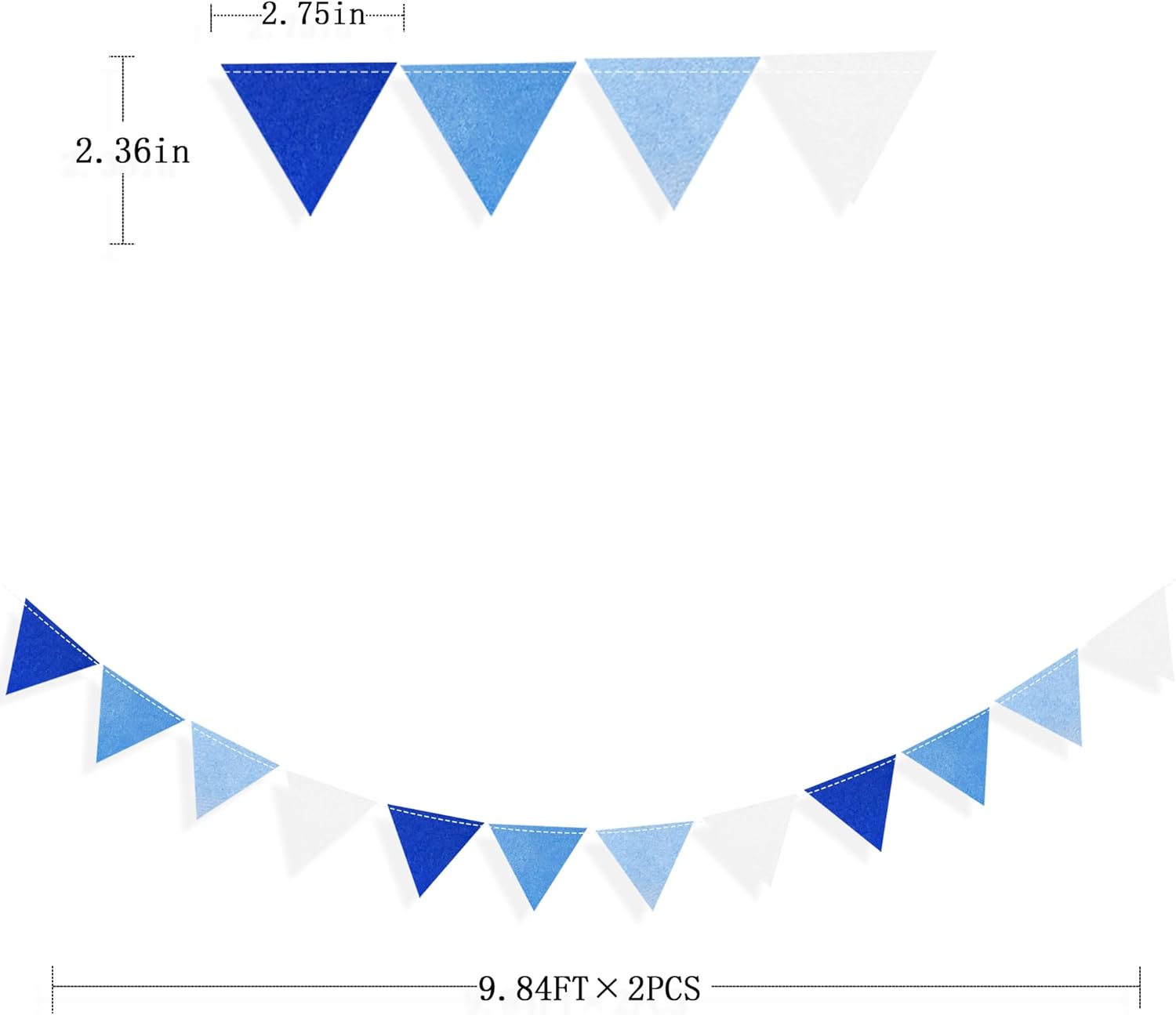 • 🔵Package Contains - 2 packs of ombre blue mini party bunting banner,Size of each flag is 2.36" × 2.75",Each mini triangle flag is 10 feet long,Total is 20 feet.Meeting daily general needs.