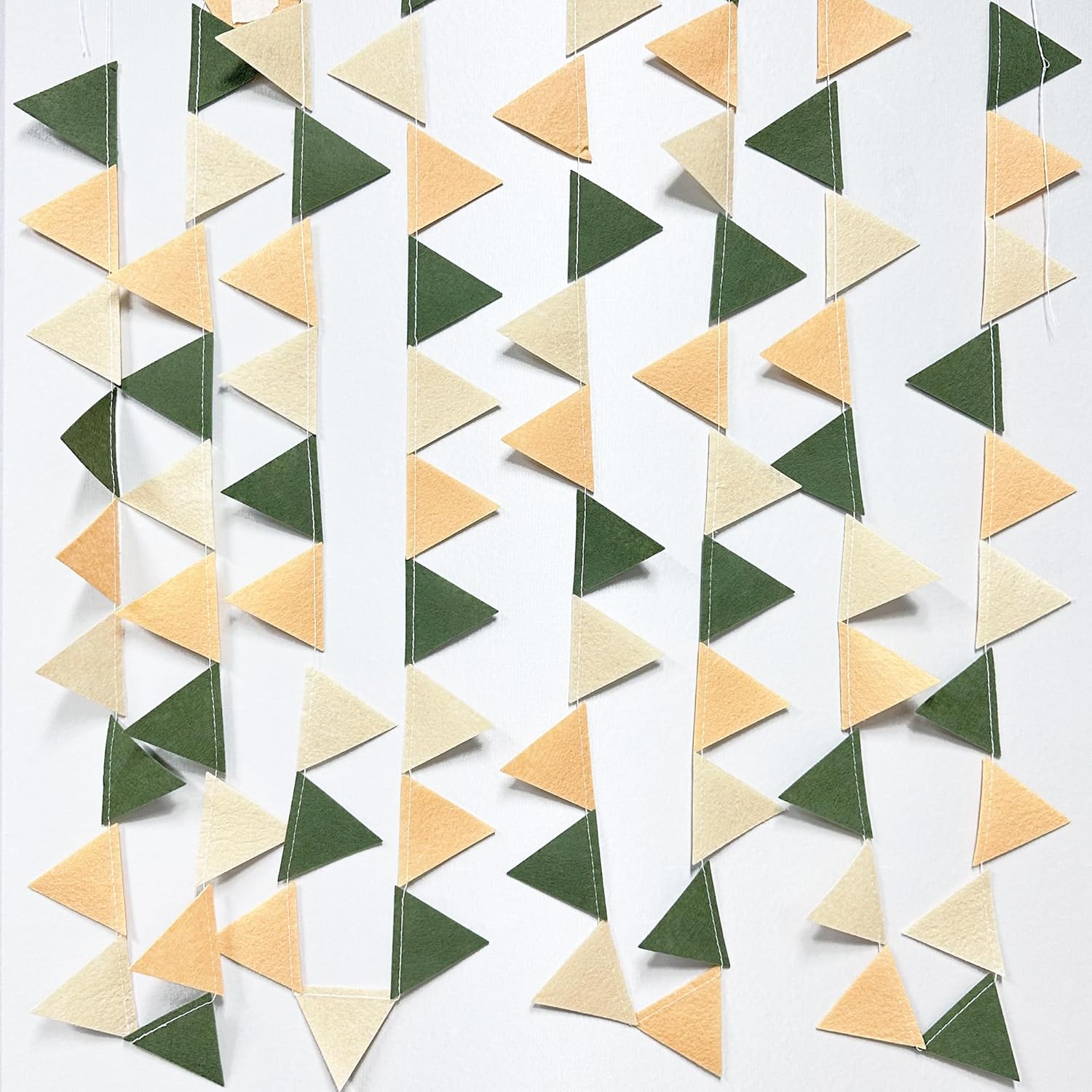 • Easy Assembly - Easy hanging and reusable.Perfect fit for sage green party decor.unroll and unwrap garland carefully. due to delicate nature of thread,may tangle.This sage green mini triangle pennant makes an attractive backdrop for videos and photos.