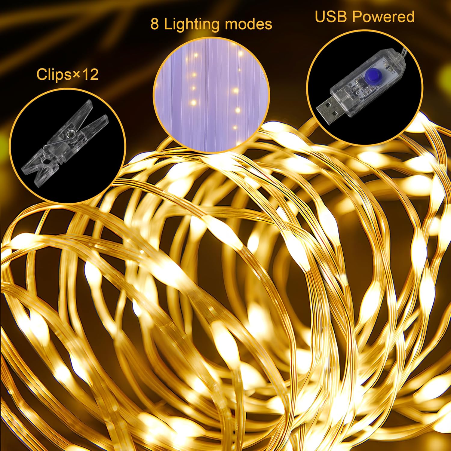 • Easy to Set: light curtain backdrop with rod pockets at the top for easy hanging on backdrop stand, attach the string lights to the sheer backdrop curtains with plastic clips, then untie the 10 light strings and plug the curtains lights into a portable external batteries or an outlet with a USB port. Note: Put away from sharp items to avoid causing the curtain with lights damaged.