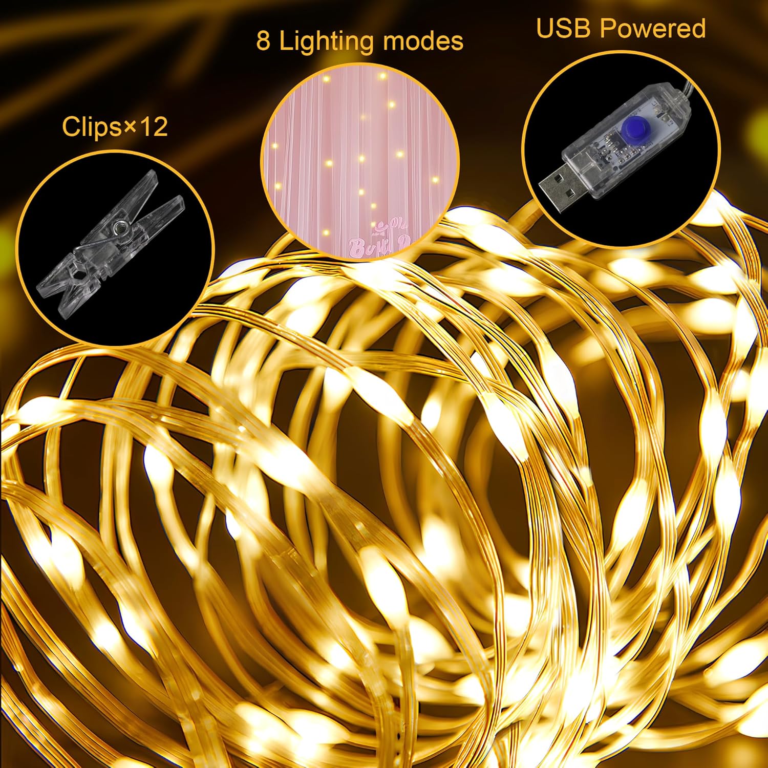 • Easy to Set: light curtain backdrop with rod pockets at the top for easy hanging on backdrop stand, attach the string lights to the sheer backdrop curtains with plastic clips, then untie the 10 light strings and plug the curtains lights into a portable external batteries or an outlet with a USB port. Note: Put away from sharp items to avoid causing the curtain with lights damaged.
