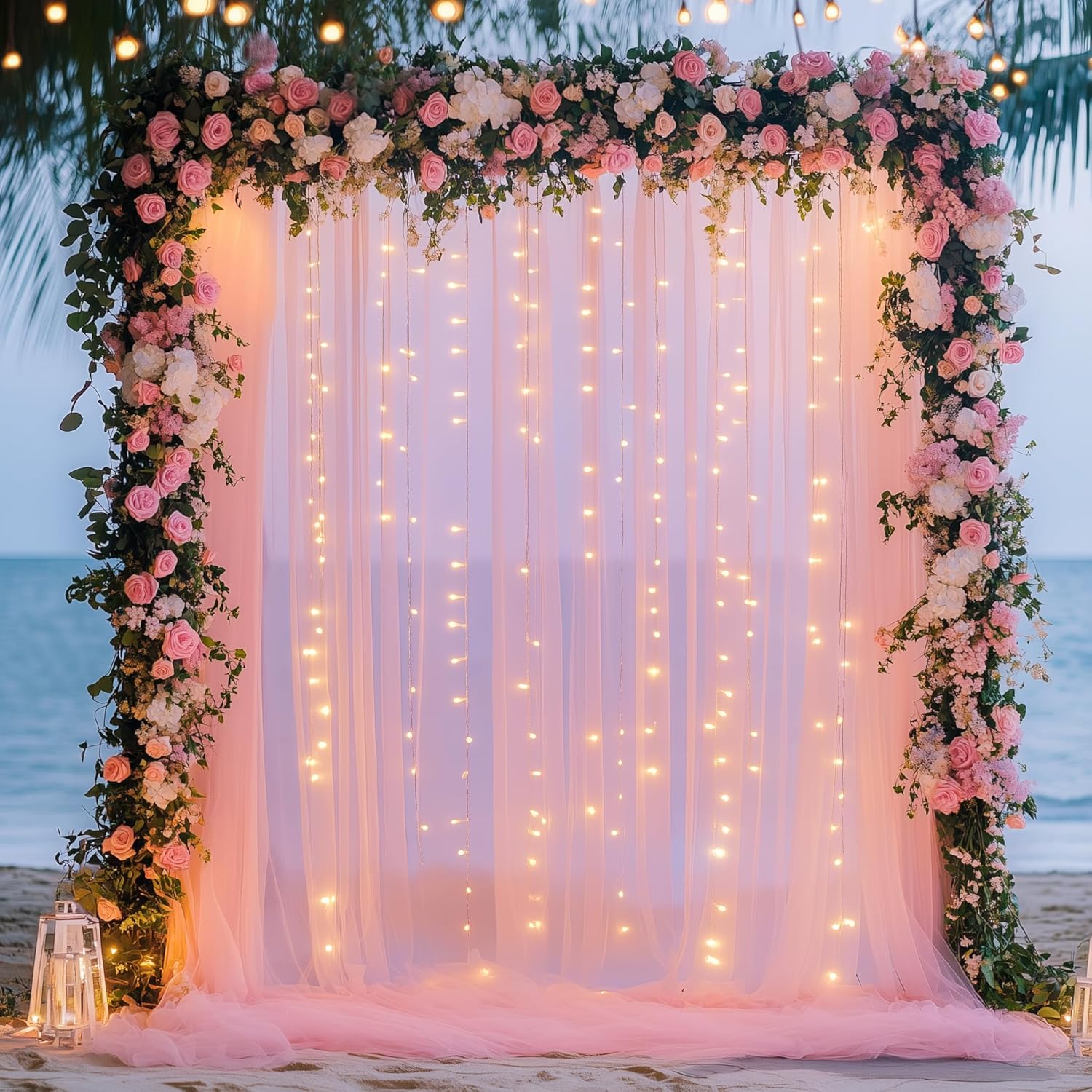 • Tulle Curtains for Decorations: Tulle backdrop curtain with lights string is transparent and breathable, with soft lighting to create a hazy backdrop stand decorations. This string lights have different settings so you can use solid lights for photos and blinking ones for other times. Fomcet curtian backdrop is recommended for anyone who wants a magical, romantic vibe.