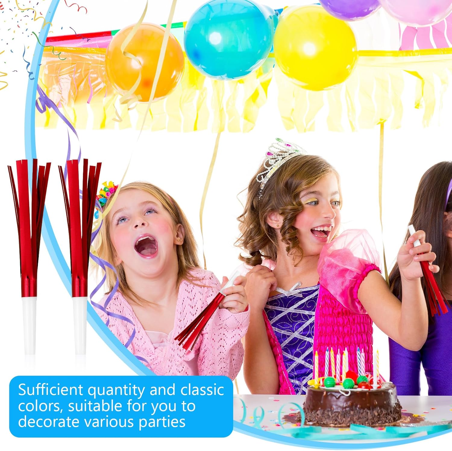 Metallic Fringed Noise Makers, for Noise Makers Party Favors, New Year Party, Baby Shower, Kids Birthday, 24 Pcs, Red