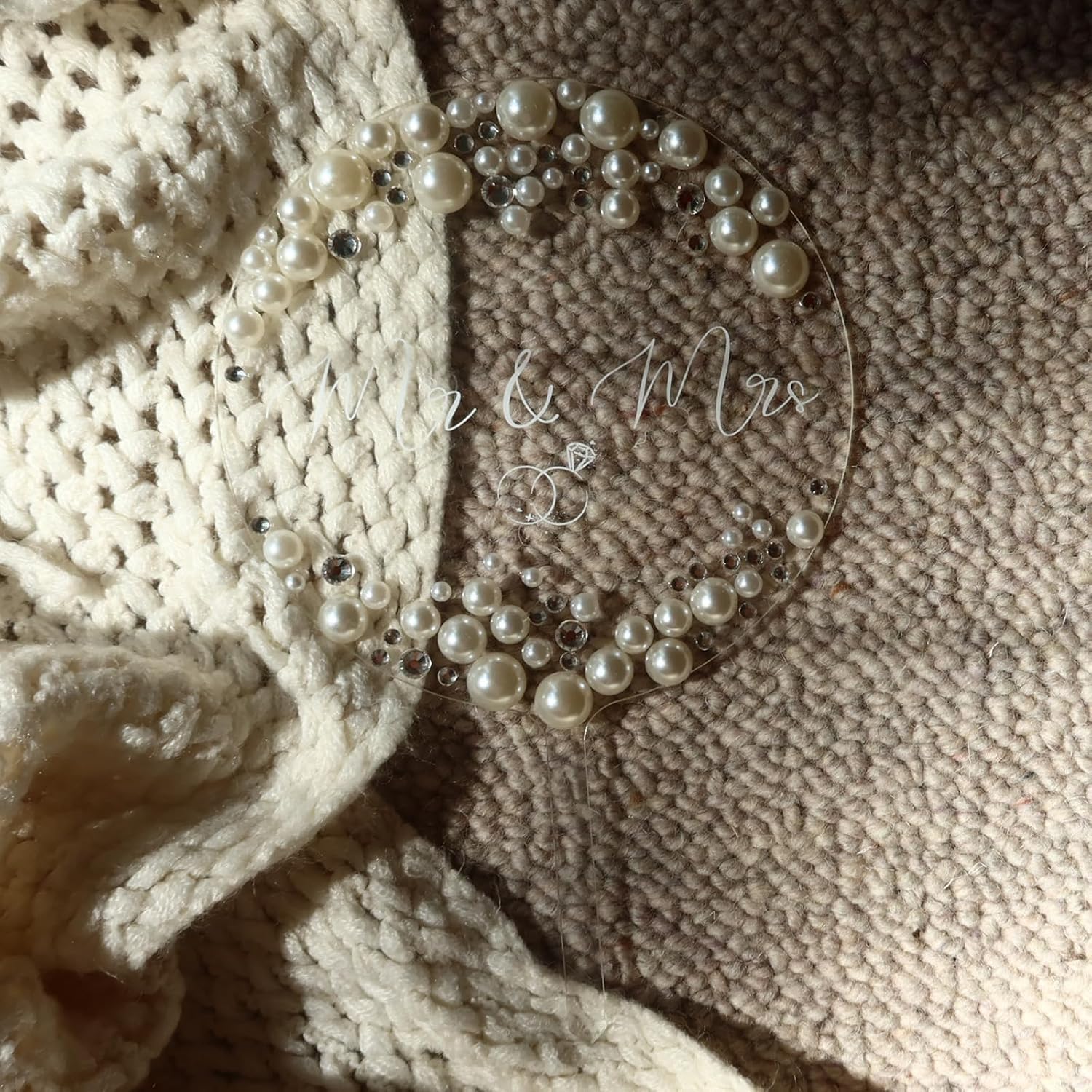 • Material & Color: Acrylic and Simulated diamonds and pearls