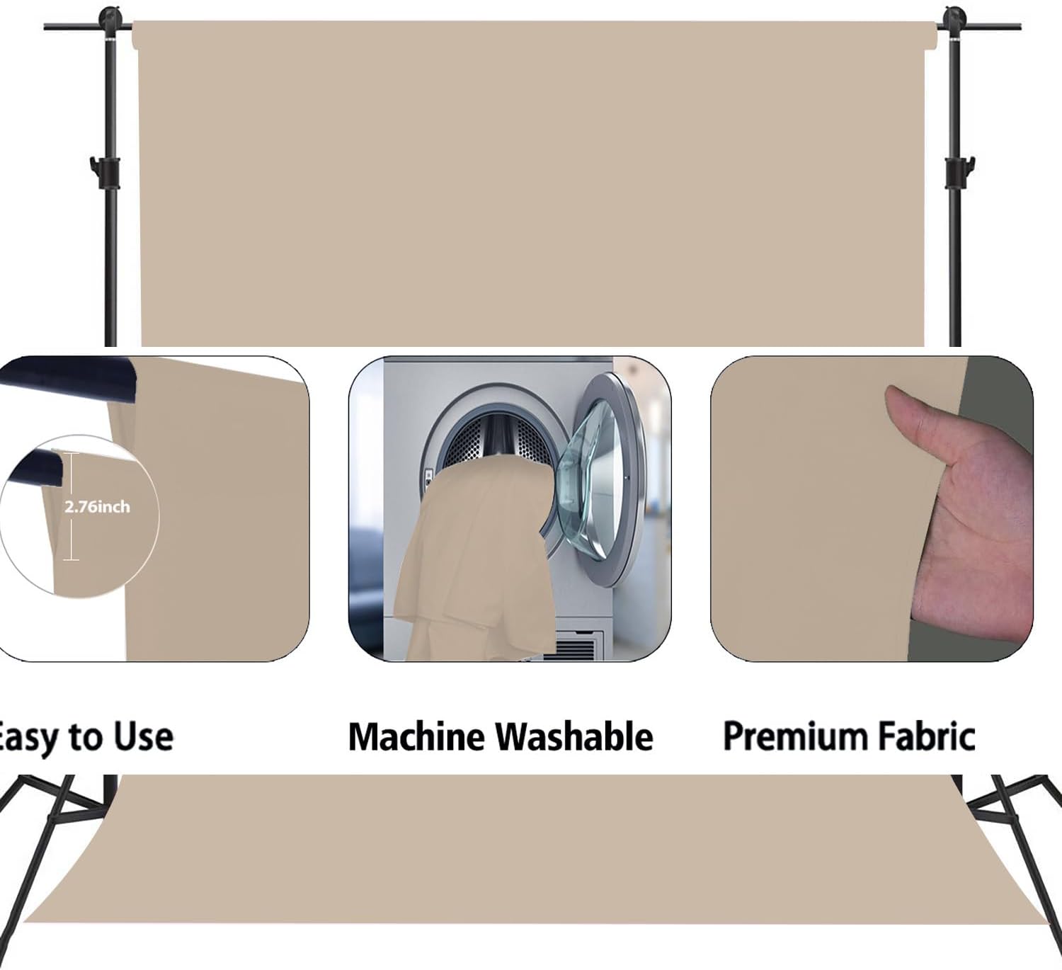 • Excellent quality: This beige photography backdrop is made of polyester fiber, soft and non-reflective fabric, can be ironed, durable, and all edges have good locking seams to prevent tearing.Please note: This package does not include background brackets or clips.