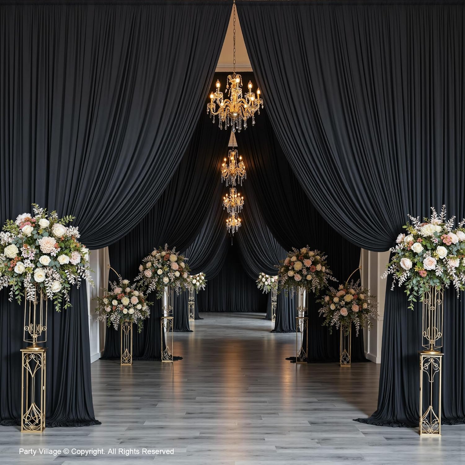 PartyVillage 50ft×15ft Black Backdrop Curtain for Halloween Parties, 10 Panels Wrinkle Free 15 FT Long Polyester Photo Backdrop Drapes Back Drop Cloth for Birthday Photography Background