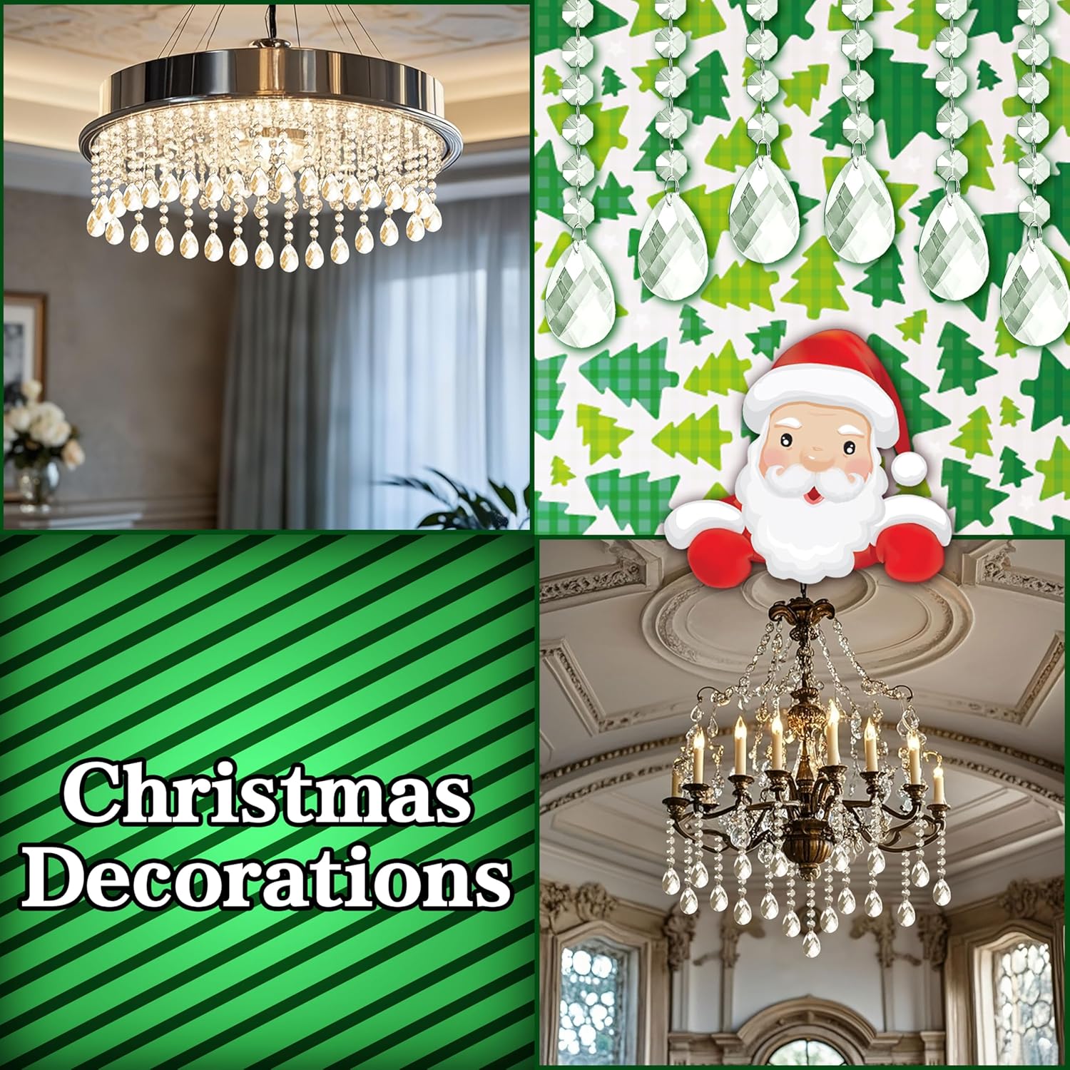 • Elegant Hanging Ornaments: Designed with teardrop acrylic prisms, combined with clear plastic icicle drops adorned with crystal beads, creating a festive and romantic ambiance. Ideal for decorating Christmas trees, centerpieces, chandeliers, windows, and various corners of your home.