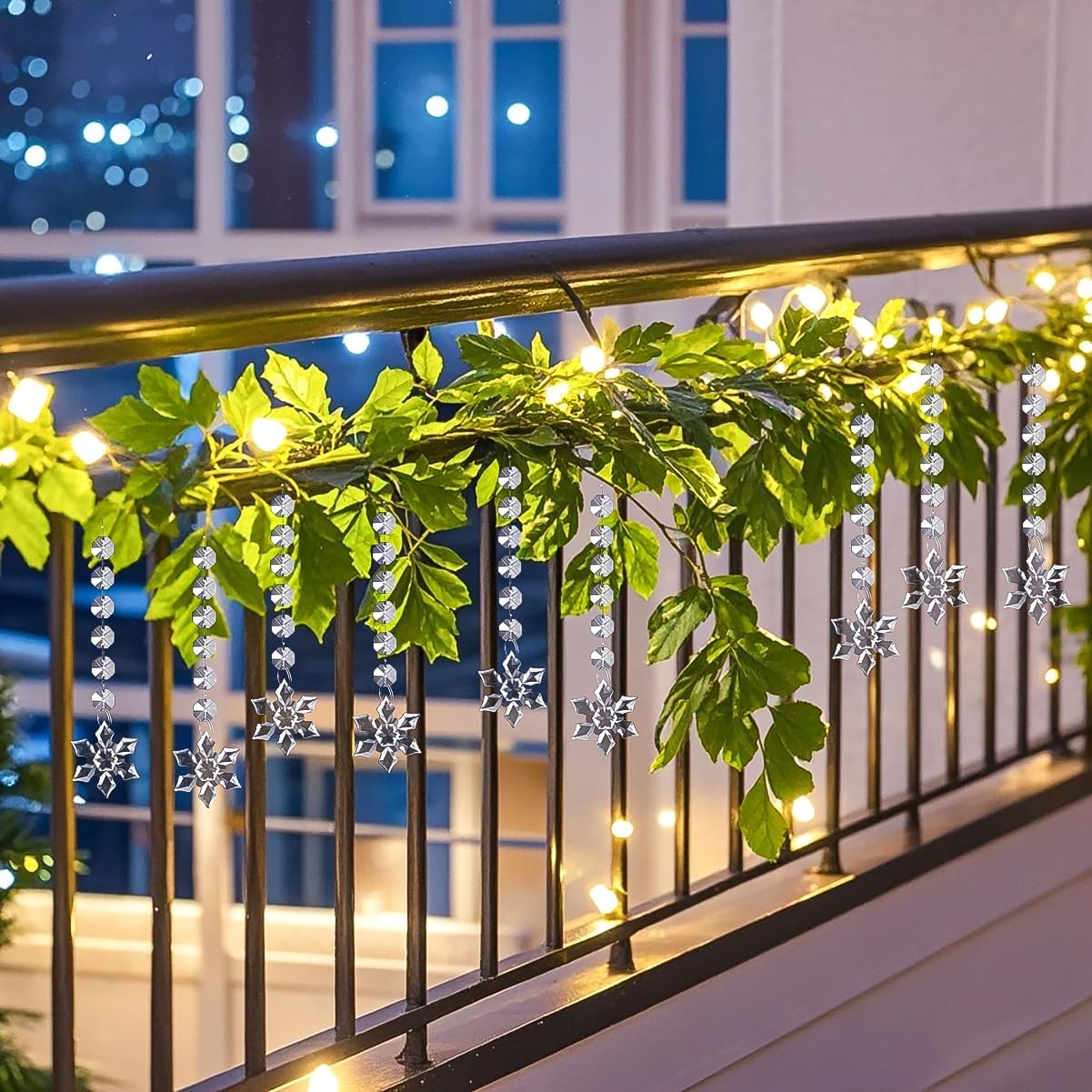 • Elegant Hanging Ornaments: Designed with teardrop acrylic prisms, combined with clear plastic icicle drops adorned with crystal beads, creating a festive and romantic ambiance. Ideal for decorating Christmas trees, centerpieces, chandeliers, windows, and various corners of your home.