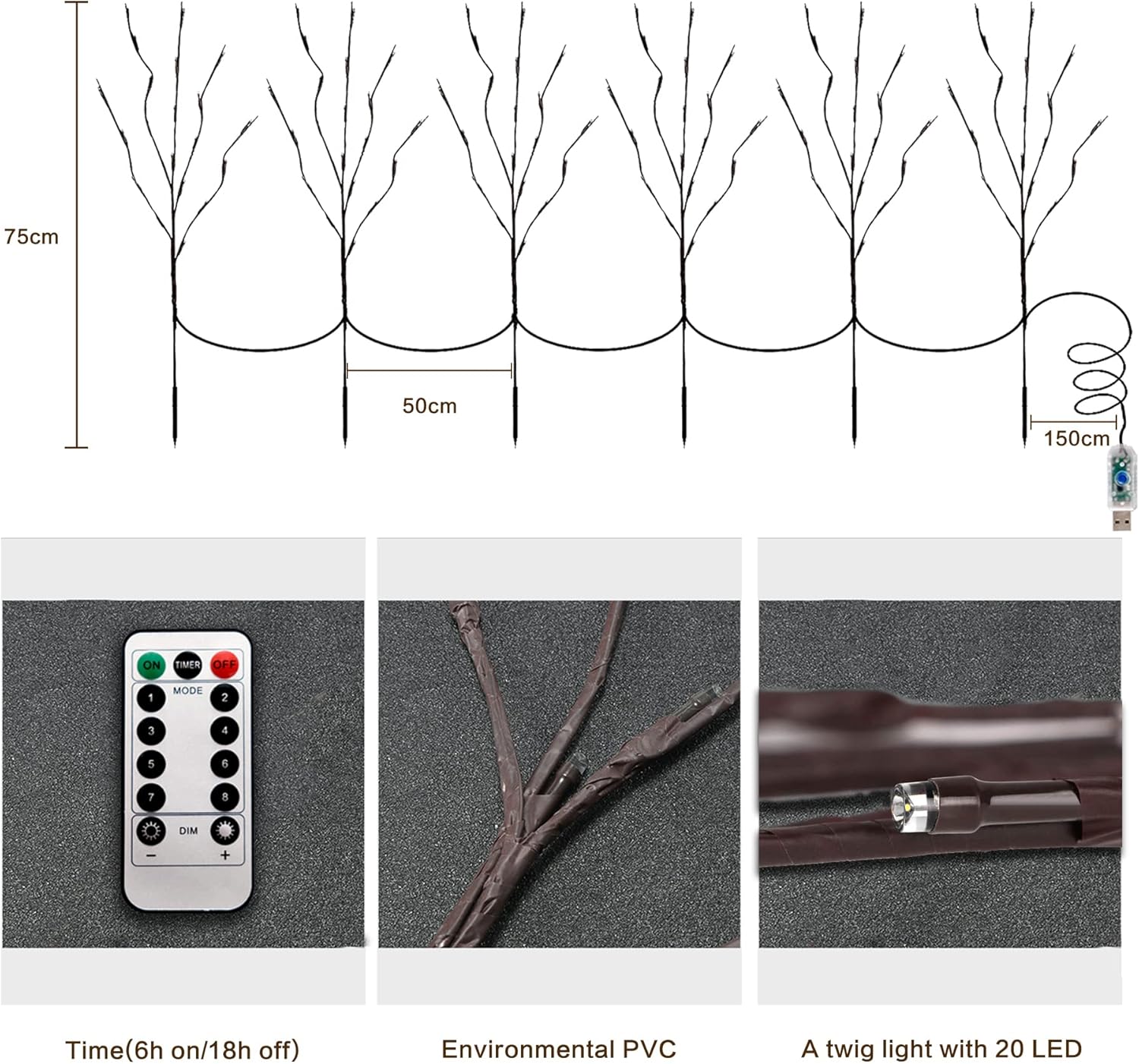 • 🎄【TWIG TREE LIGHT】6pcs branches are included,Each willow branch light comes with 5 bendable stems, 30 inches tall, 120 LED warm white color light bulbs are enough to create a relaxed and warm atmosphere.