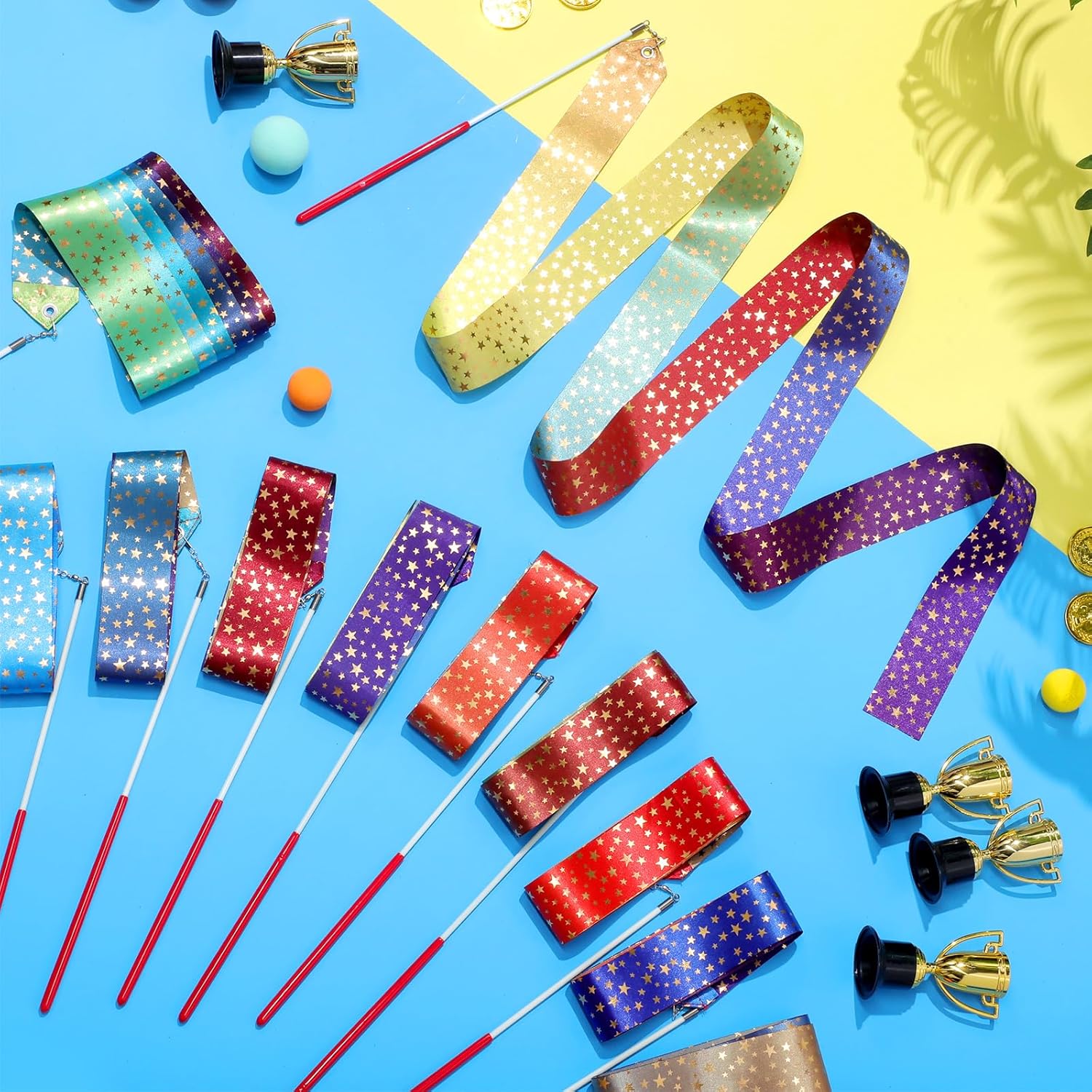 • Suitable Size: each gymnastics ribbon is about 2 meters/ 78.74 inches in length, 4.5 cm/ 1.77 inches in width, the non slip stick is about 29 cm/ 11.4 inches long, very suitable for gymnastics dance performance, they can swirl the gymnastics ribbon on the stage to show their charm