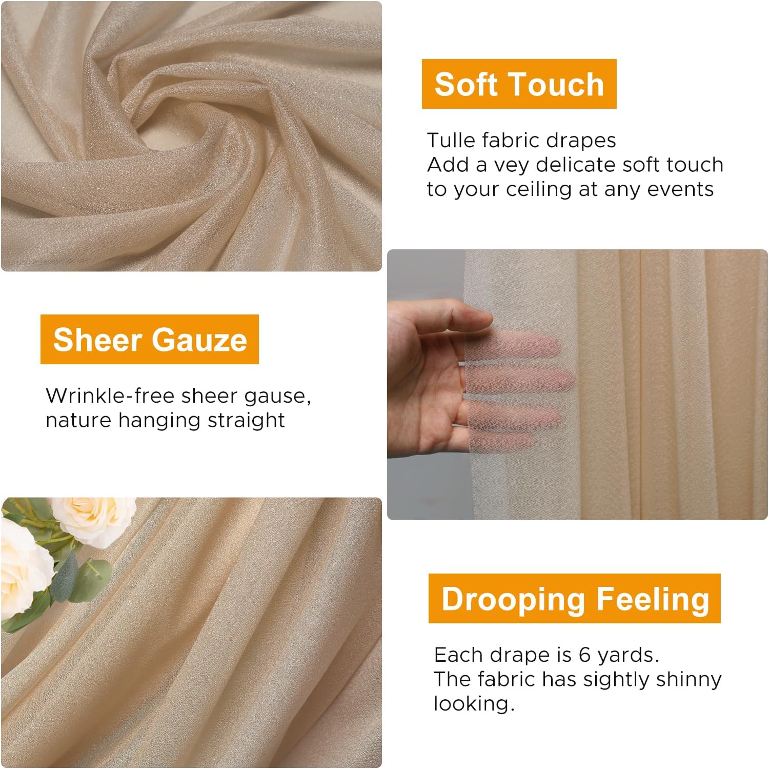• Elegant Design: This romantic wedding drapes can be used as a decorative element for your arch backdrop. It is an excellent addition to any event decoration. Different colors and multiple quantities to choose from to match any event you want