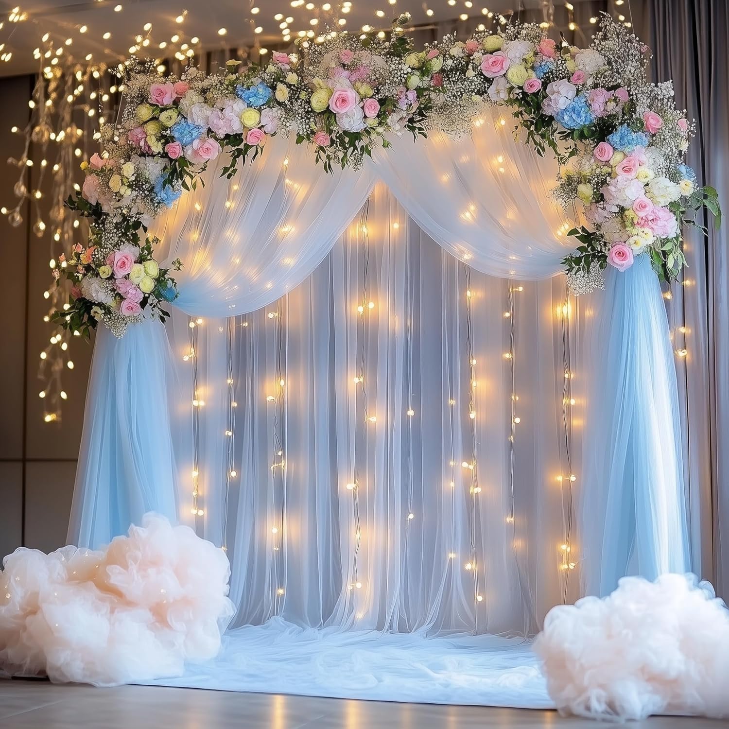 • Widely Used: The sheer curtains with lights are excellent background decorative accents for edding ceremony, receptions, bridal showers, baby showers, birthday party, photography backdrop, stage photography, room. Tulle backdrops are suitable for all occasions, creating a cozy atmosphere and leaving beautiful moments for the event.