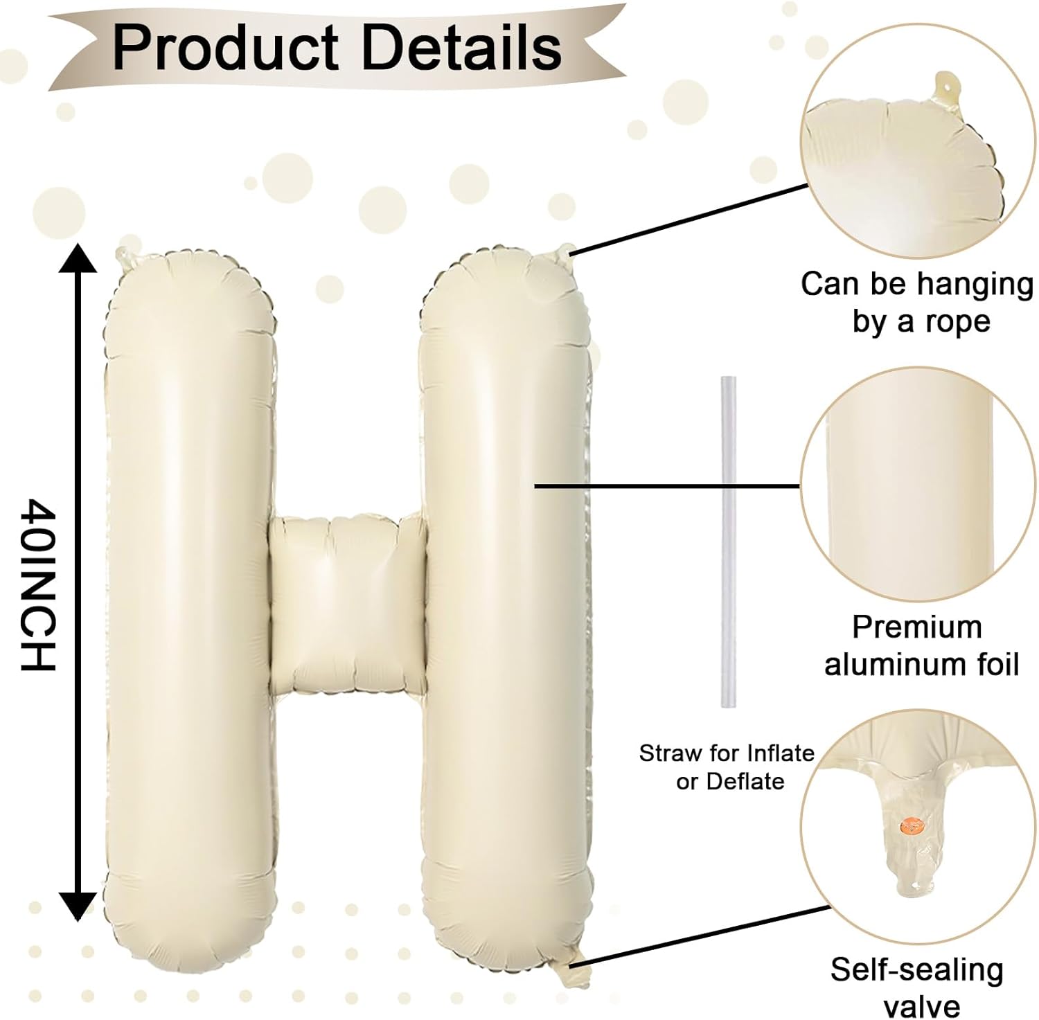 • Cream White Letter H Balloon 40 Inch: Includes 1pc giant beige "H" letter balloon and 1 straw for easy inflation and deflation. Our elegant big beige balloons are perfect for personalized parties. With 26 letters (A-Z) and numbers (1-9) available, you can mix and match to fit your theme.