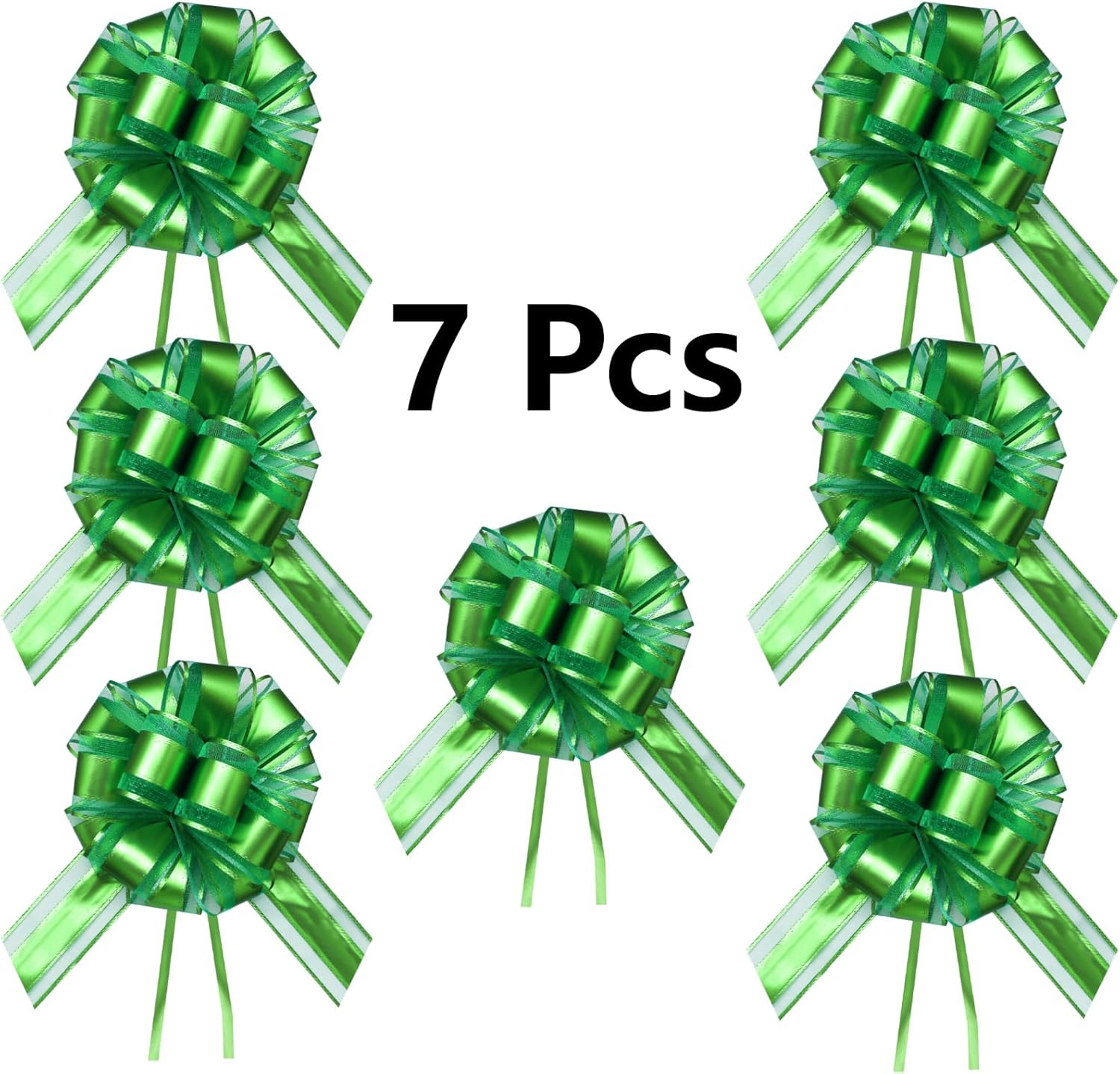 7 Pieces Large Pull Bows, 6 inche, Big Bow for Gift Wrapping, Christmas Party Birthday Gift, Wedding Baskets,Valentine's Day Gift Decorations, Flower Decoration (Green)