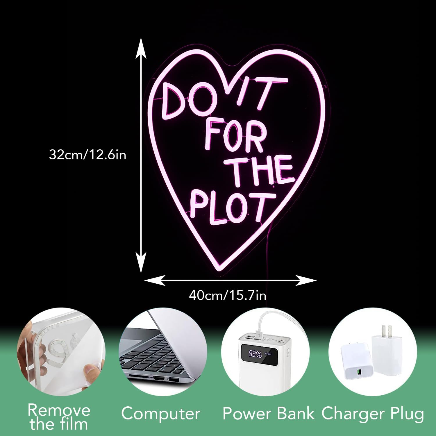 • Warm design: The heart shaped is combined with DO It For The Plot neon signs are a unique and charming lighting decoration. The pink design creates a soft and romantic atmosphere, bringing endless surprises and joy to people
