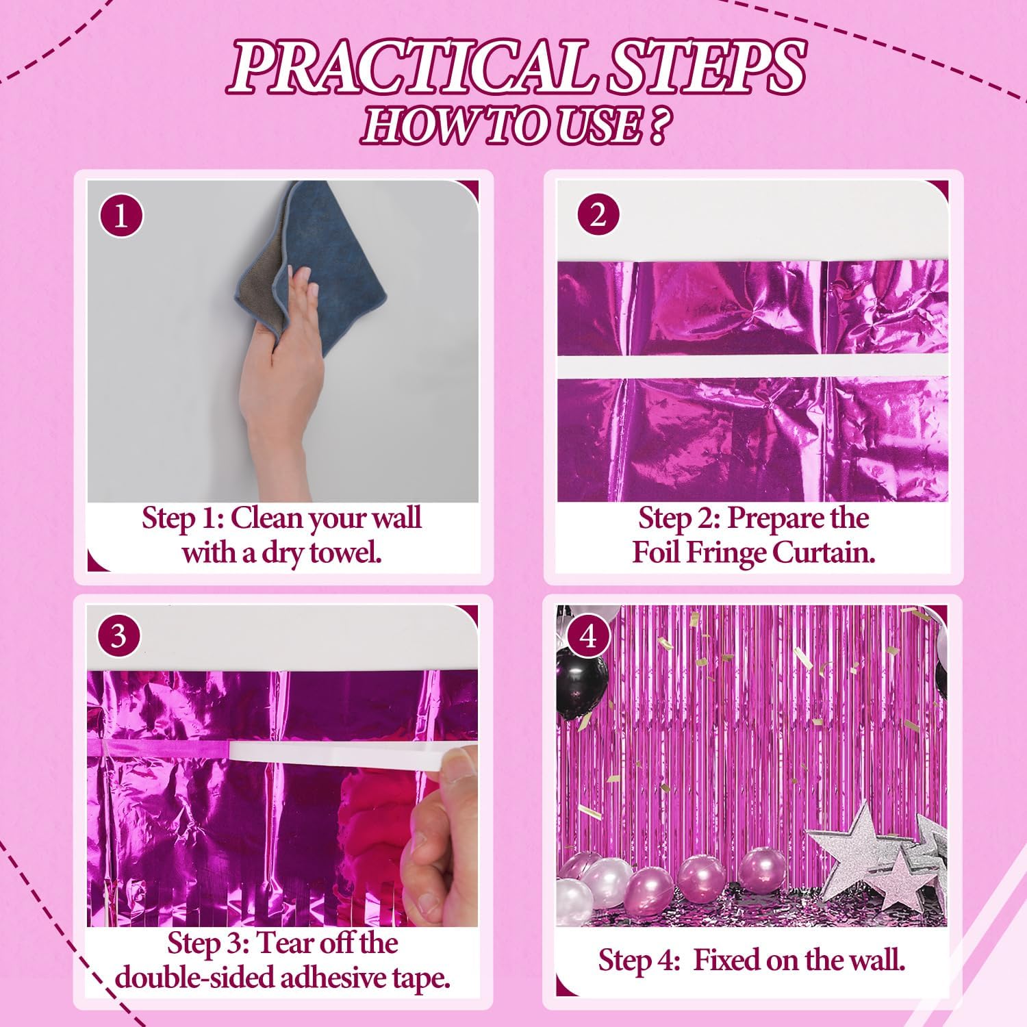 3 Pack Foil Fringe Backdrop - Hot Pink Shiny Tinsel Curtains for Party Decoration/Photo Booth Props - 3.3x8.2 FT Metallic Foil Backdrop for Birthday, Wedding, Graduation, Christmas.