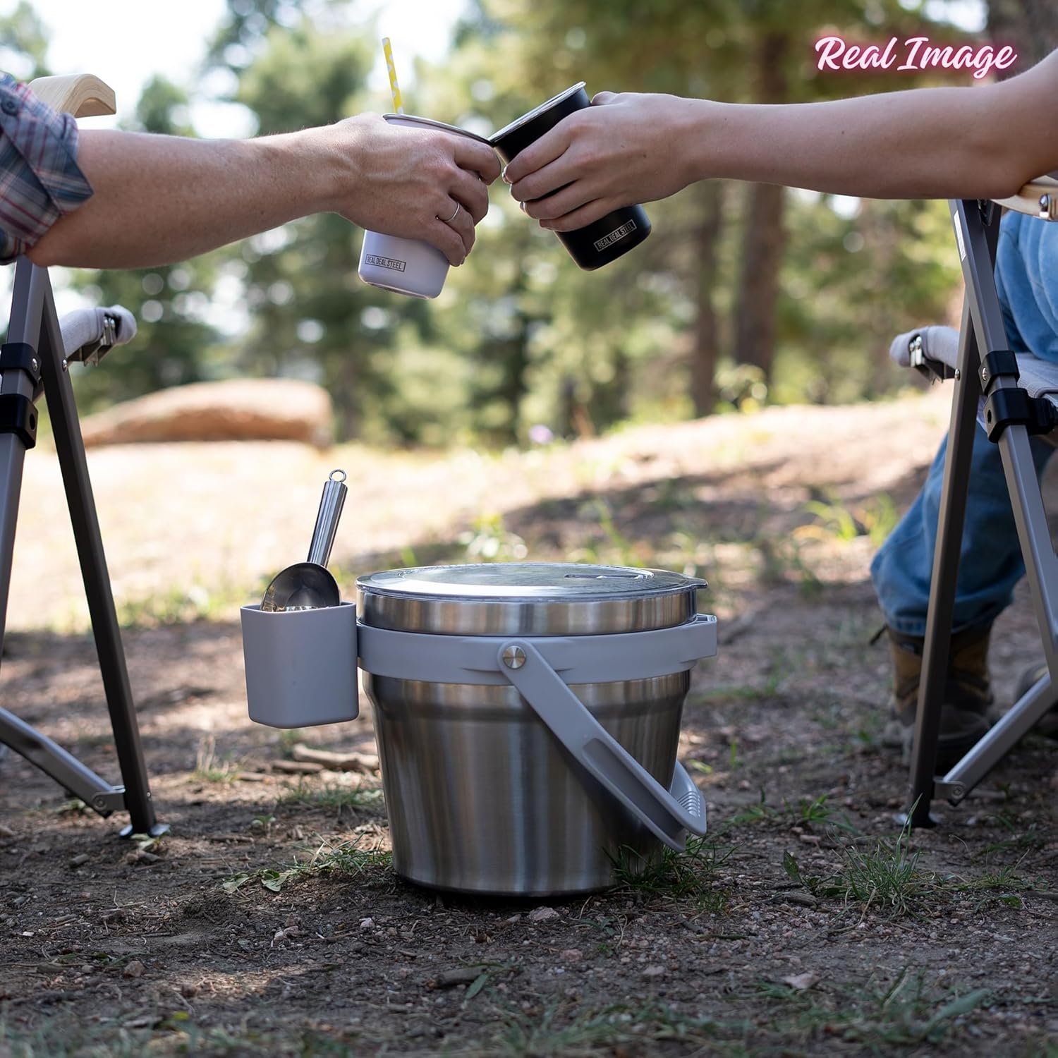 • ALL-IN-ONE SET: Includes a large ice bucket, leak-proof lid, ice bucket scoop, and two bar attachments - making it an ice bucket with lid and scoop and the ultimate all-in-one ice bucket for parties or outdoor gatherings.