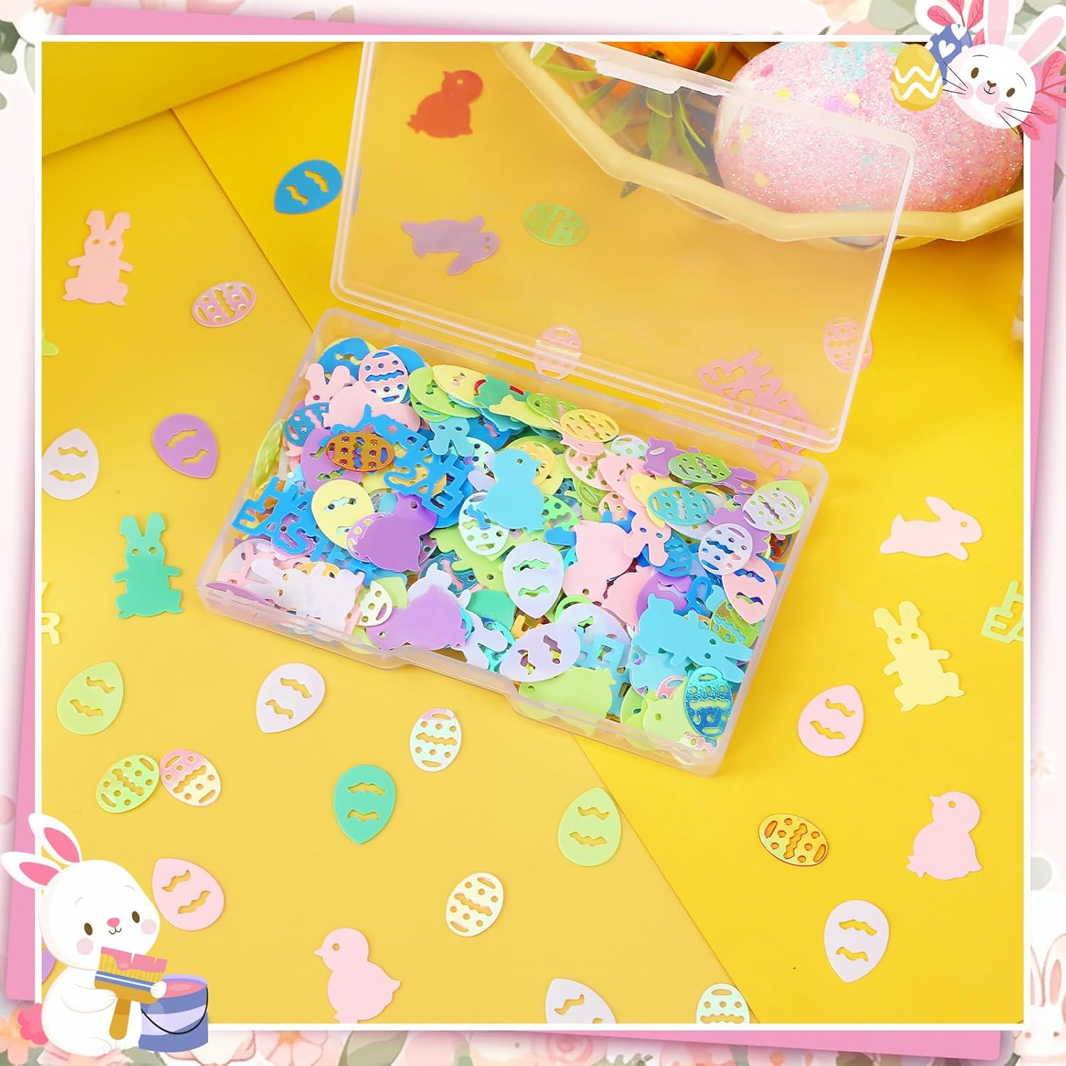 • Good-Quality Material: Chicken confetti is made of good-quality PVC material, which has good durability and can be used for a long time. Shiny and lovely. Lovely eggs and rabbit patterns are designed in the Easter theme and can help you decorate the Easter party