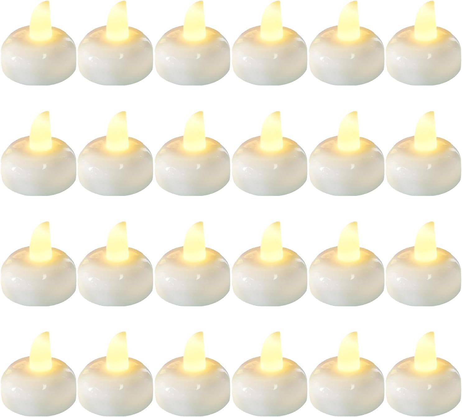 • 1. Generous Quantity for Impactful Decor Receive a pack of 24pcs of these warm white flameless LED floating candles. This ample quantity allows you to create a truly captivating display. Whether you're decorating a large pool for a grand outdoor party or multiple small bowls for an intimate wedding reception, having 24 candles ensures you can achieve a lush and enchanting aquatic ambiance.
