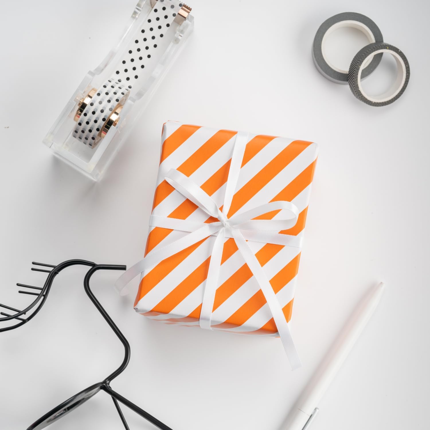 • REVERSIBLE: A solid orange side and a orange/white stripe side, two different classic designs make beautiful and varied gift presentations easy