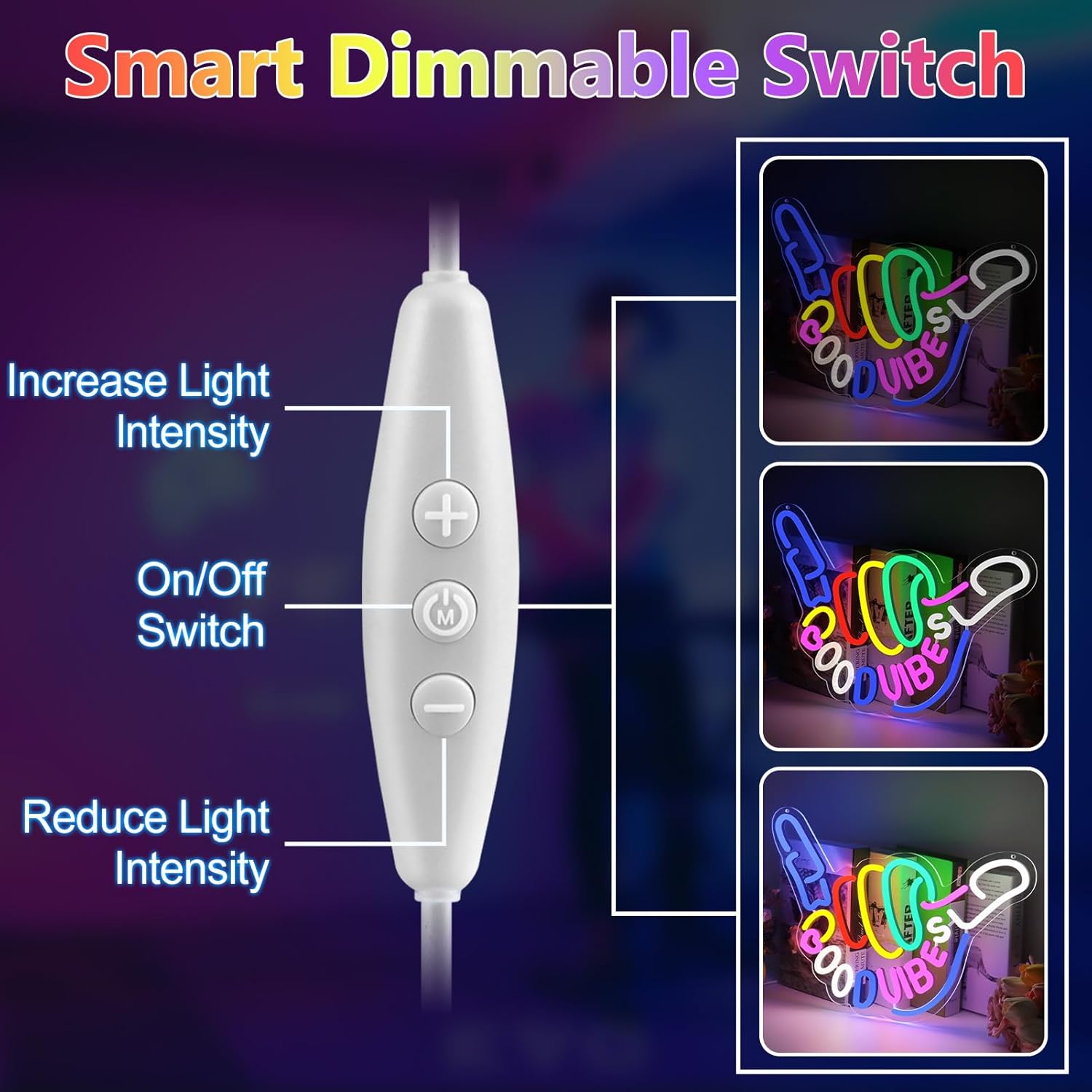 Good Vibes Only Neon Sign for Wall Decor, Niubility Good Vibes Neon Sign, Colorful Light-Up LED Sign, Dimmable USB-Powered Sign with ON/OFF Switch for Bedroom, Nursery, Club, Bar, and Party Decor