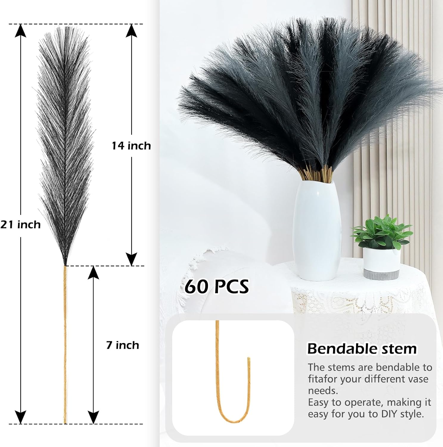 • MULTIPLE SCENARIOS AVAILABLE: Suitable for various spaces, this artificial pampas grass can transform the mood in any corridor, parlor, sleeping quarters, or dining space. It fits seamlessly with both contemporary minimalism and free-spirited bohemian decor, and is also adaptable for floral designs, photography backdrops, and festive adornments.