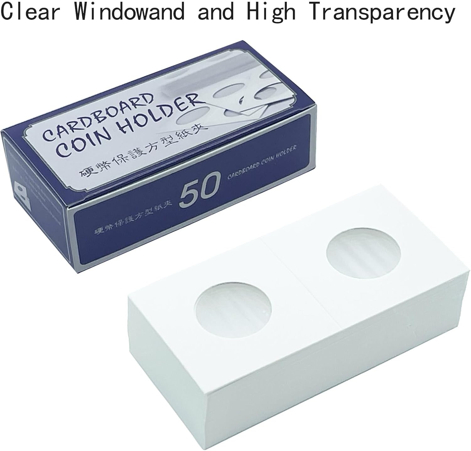 • CARDBOARD COIN FLIPS: 200 Pieces 2" x 2" coin holders , A box of 50 pieces. Coin collection supplies size: 31.5mm / 1.24 inch, which are thicker and more rigid then most flips on the market