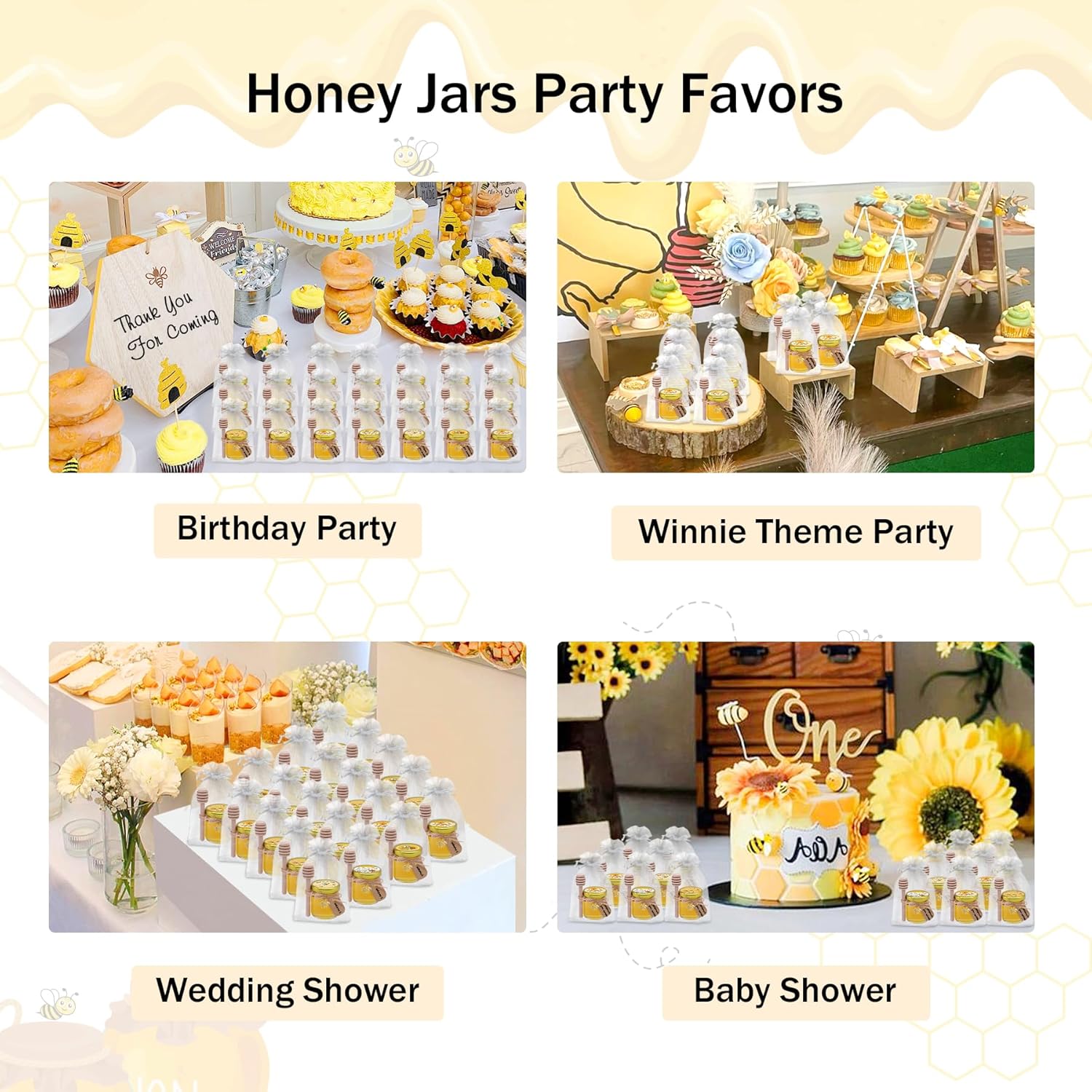 • Elegant Small Honey Jars for Party Favors: Like golden drops of sunshine, our mini honey jars with dippers become sweet keepsakes for weddings, baby showers, and more. The 1.5 oz glass honey jars with lids add a charming touch to heartfelt celebrations.