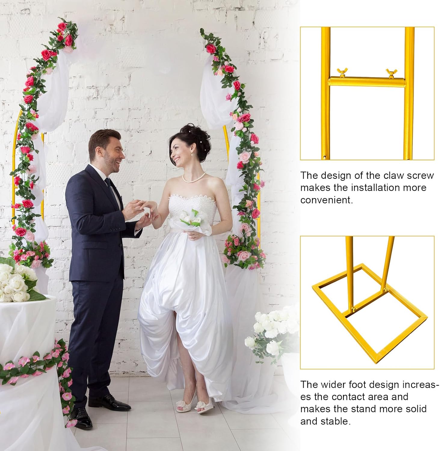 • Unique Design: The gold half-moon Wedding Arch creative wedding backdrop stand with a unique curved top design, consist of two arches of different heights with a semi-open design.