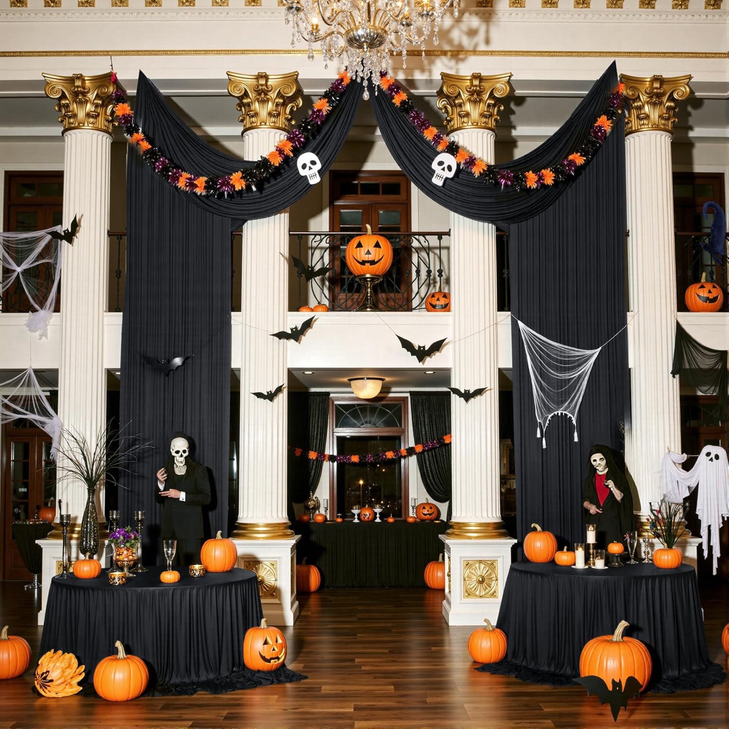 PartyVillage 10ft×15ft Black Backdrop Curtain for Halloween Parties, 2 Panels Wrinkle Free 15 FT Long Polyester Photo Backdrop Drapes Back Drop Cloth for Birthday Photography Background